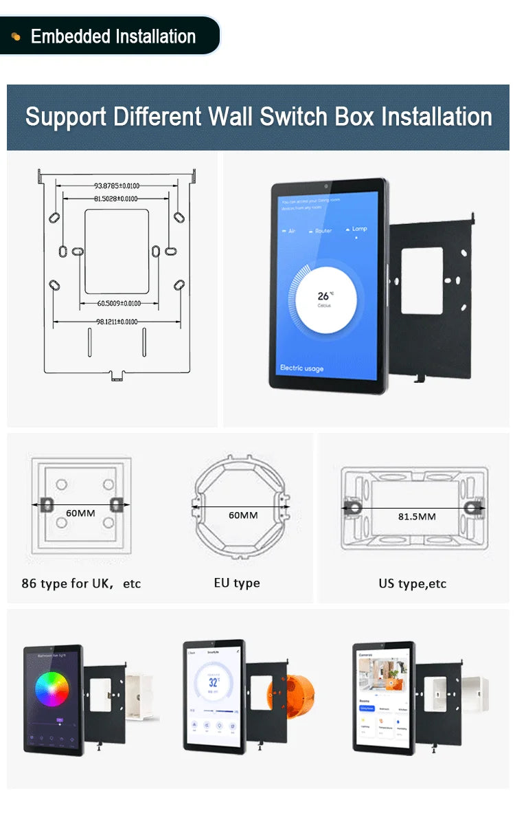2024 new 8 inch rk3566 quad core 2gb ram wifi RJ45 PoE capacitive touch switch smart for smart home