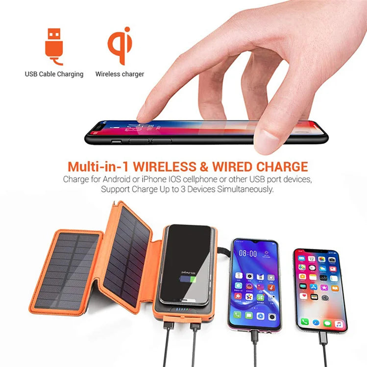 2025 New Tech Waterproof Portable Folding Wireless outdoor solar power battery bank 50000 8000mah