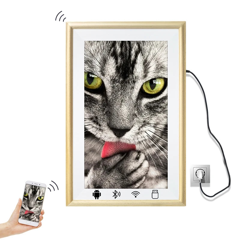 ---Digital photo frame Handcrafted wooden frame Elegantly crafted from premium material.