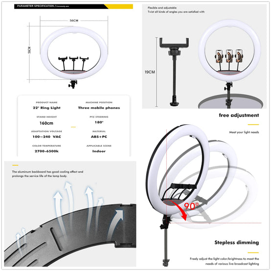 22 inch Photographic Lighting Professional LED Ring Light with Tripod Stand