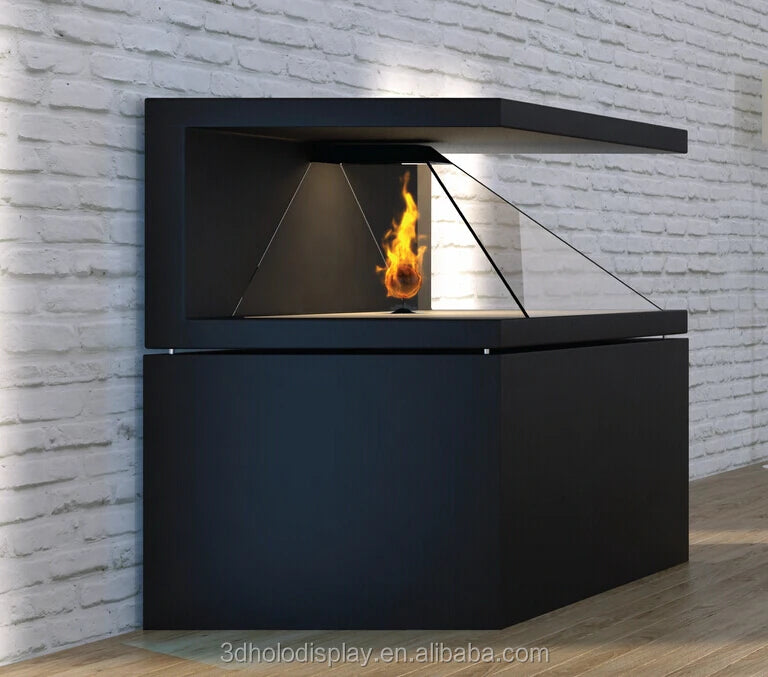 Holographic display showcase is a 3D platform fully integrated that combines the most advanced technologies of processing of image with a modern window counter. This allow focus the attention on the product and show to your costumer in a unique way. This advertising is ideal for museums, hall, shop windows, exhibitions and events.