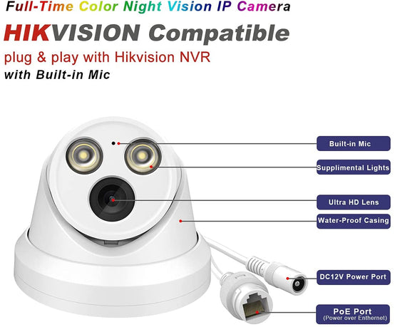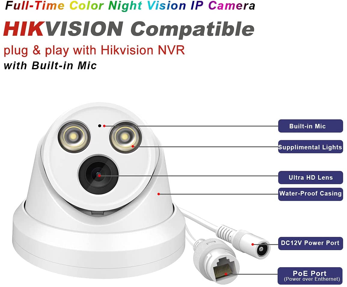 24 hours full time color night Compatible with metal shell cheapest 8mp poe ip motion color vision camera