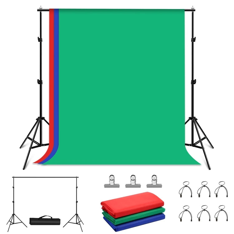 2x2m Photo Studio Background Support Stand Backdrop Crossbar Bracket Kit with 3 Color Backdrops