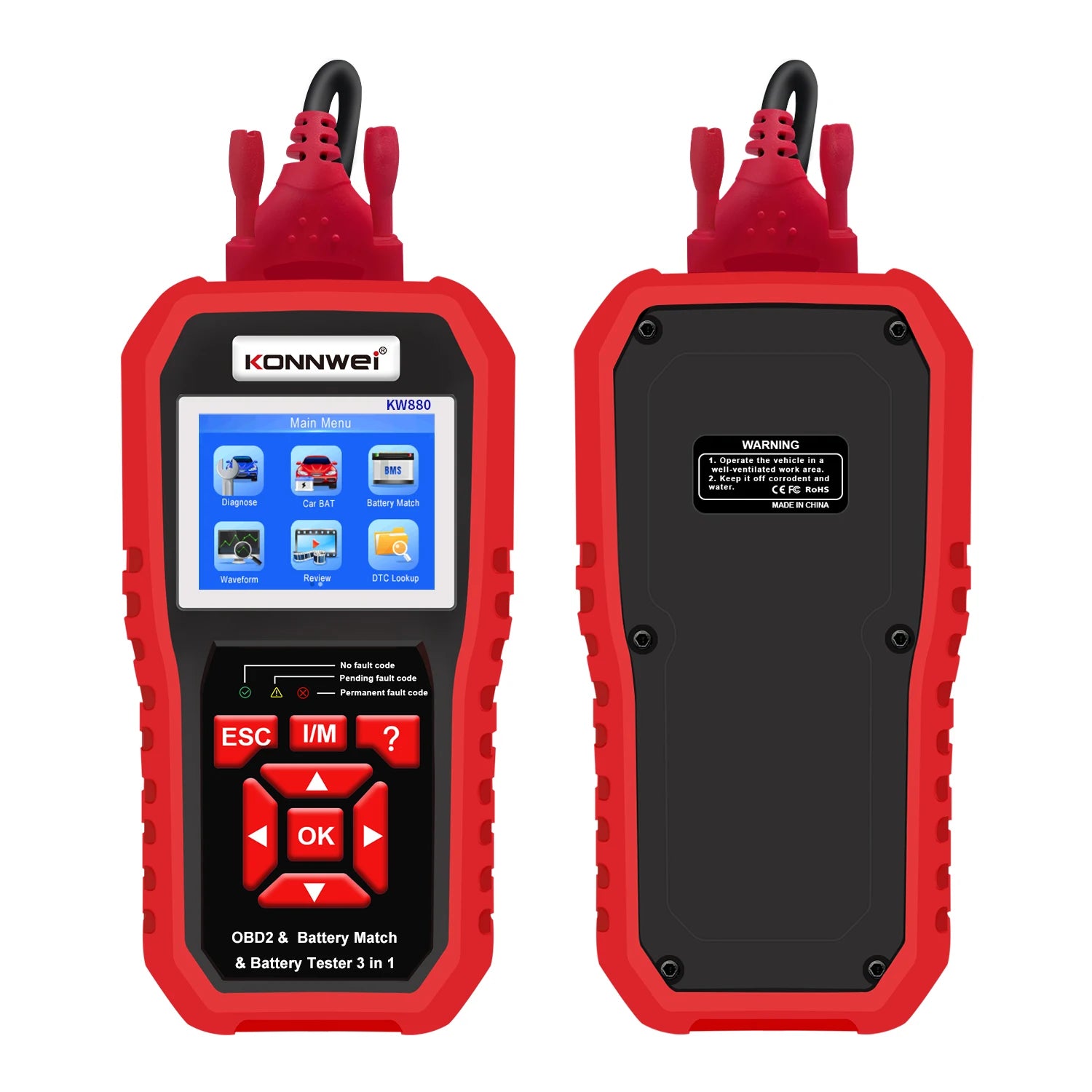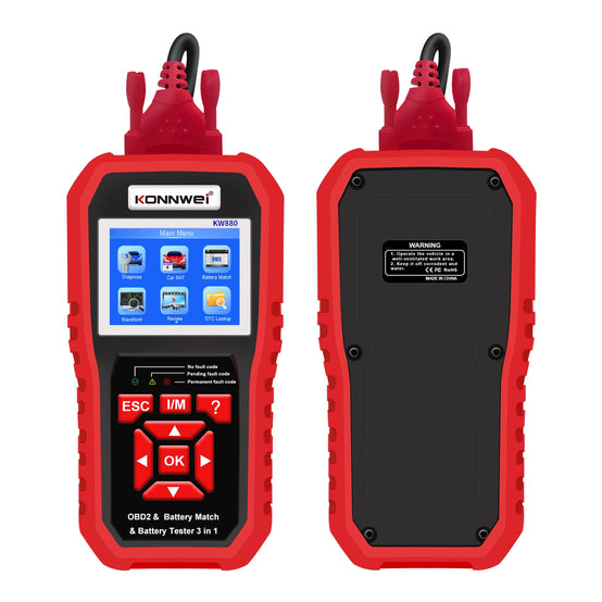 3-in-1 OBD2 car scanner KONNWEI KW880 + 6V 12V motorcycle and car battery tester + battery match reset tool