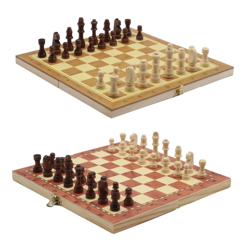 3 in 1Chess Set Wooden Chess Game Backgammon Checkers Indoor Travel Chess Wooden Folding Chessboard Chess