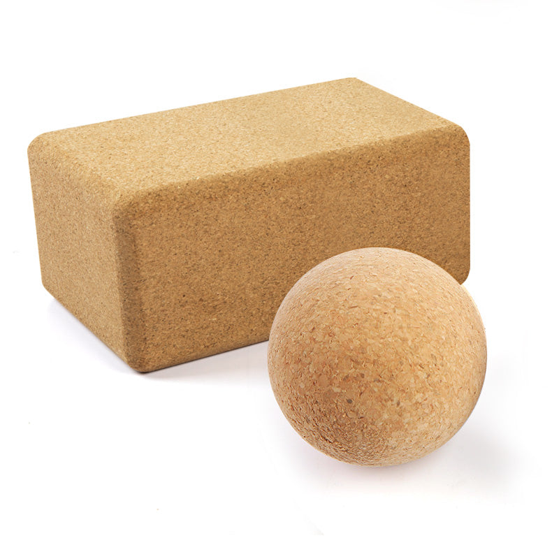3 PCS Eco Friendly Embossed Logo Massage Ball and Cork Yoga Block Set