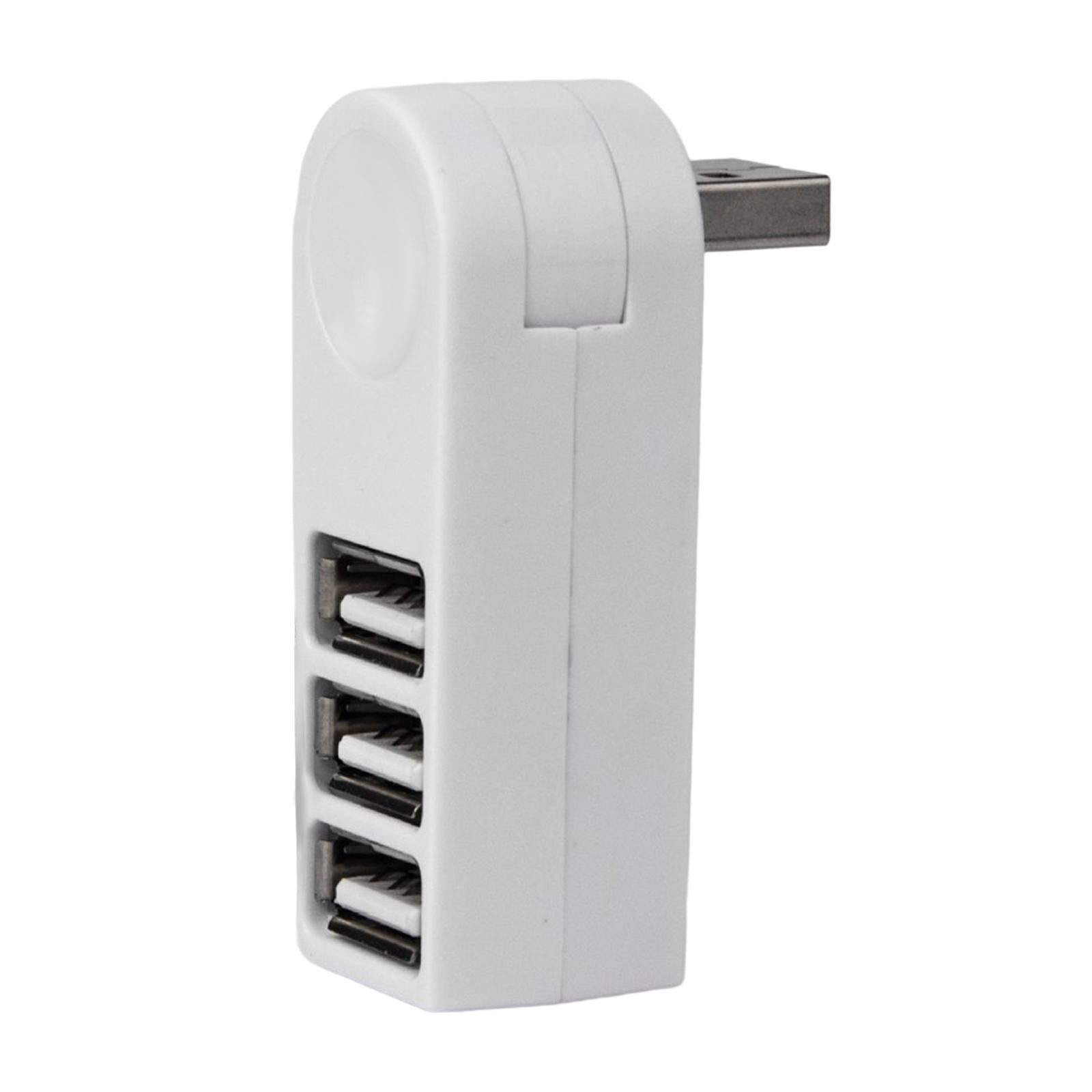 3 Port Mini USB 2.0 Hub 270 Degree Rotatable Compact Size Portable for Mouse White