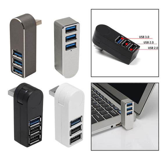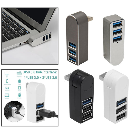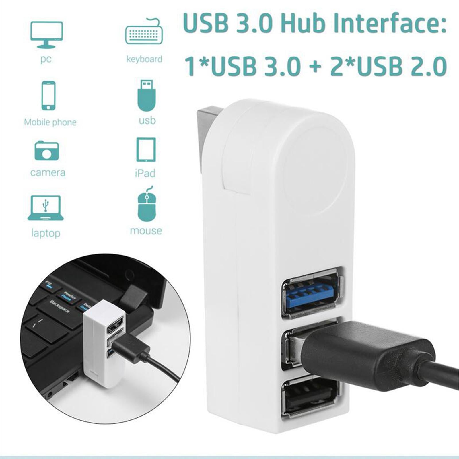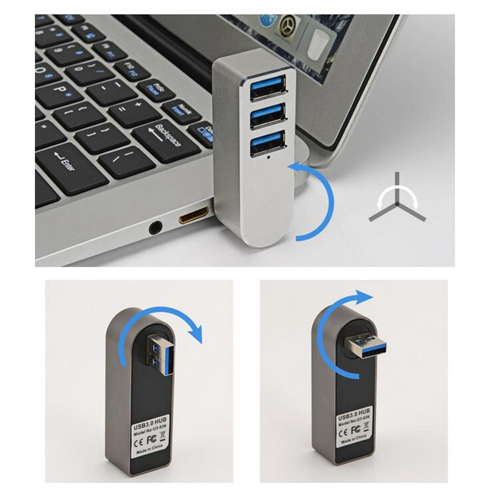3 Port USB 3.0 Hub 270 Degree Rotatable Converter for Mouse Digital Camera Argent