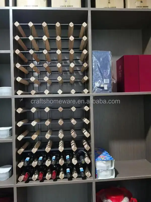 30 Bottles pine wood and metal timber modular wine racks solid wood square wine holder with metal frame