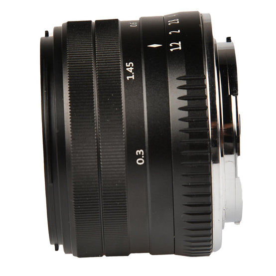 - Manual focus designed: permits working with subjects as close as 0.98 Feet Depth of field and distance scales aid pre focusing focusing techniques