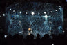 Setting up Holo-Gauze is relatively quick and simple. The angle of the projector is important, as is the surrounding stage lighting. Unless the projector is at a certain angle, it will create a secondary projection on the back of the stage. Lighting is crucial in order for the imagery to appear 3D; the stage needs to be back lit in order to create a sense of depth, as a completely blacked-out stage would flatten the visuals. This also means it needs to dark if used outdoors.
