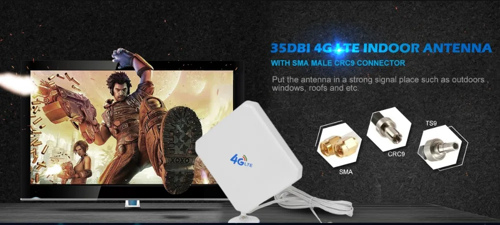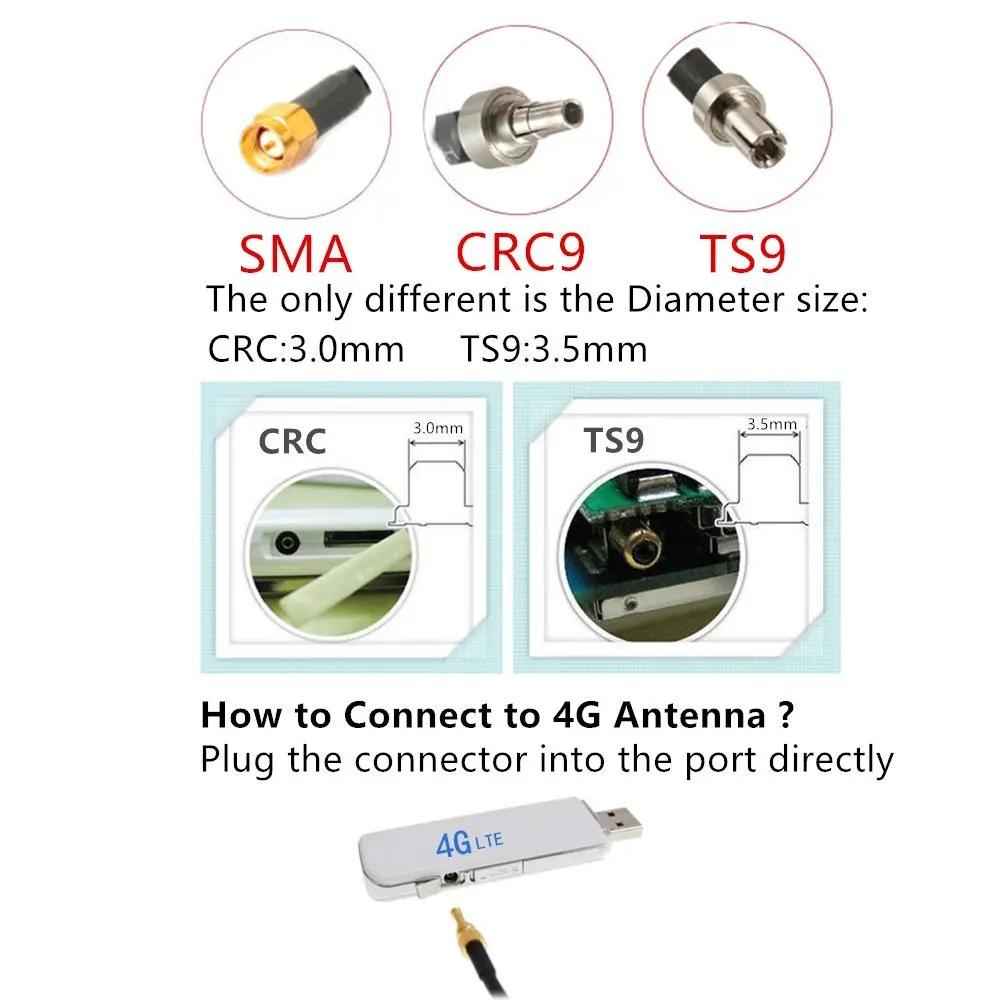 Features:This antenna will work with all mobile broadband devices that have a SMA external antenna port.Wi-Fi 4G mobile devices and wireless router can be used.This Antenna will greatly improve your mobile broadband reception if you are in a low signal area.This Antenna has 2 SMA connectors, for the latest high speed 4g LTE modems/Wi-Fi devices.Please make sure your device has a SMA external antenna port, and not a CRC9 or TS9 version.