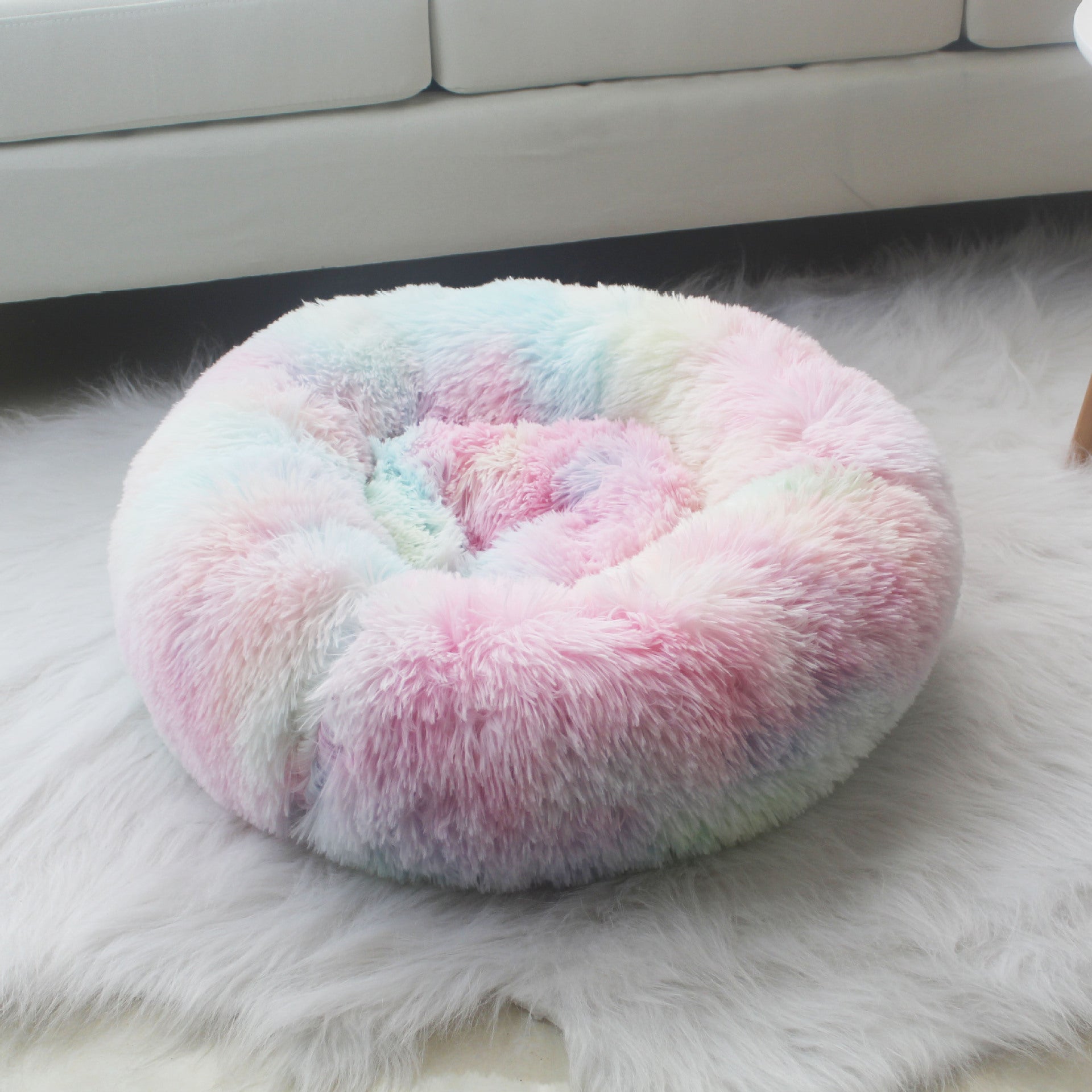 40cm Faux Fur Ultra Soft Dog Cushion Cat Bed Pet Beds Good Quality Plush Round Luxury Dog Bed
