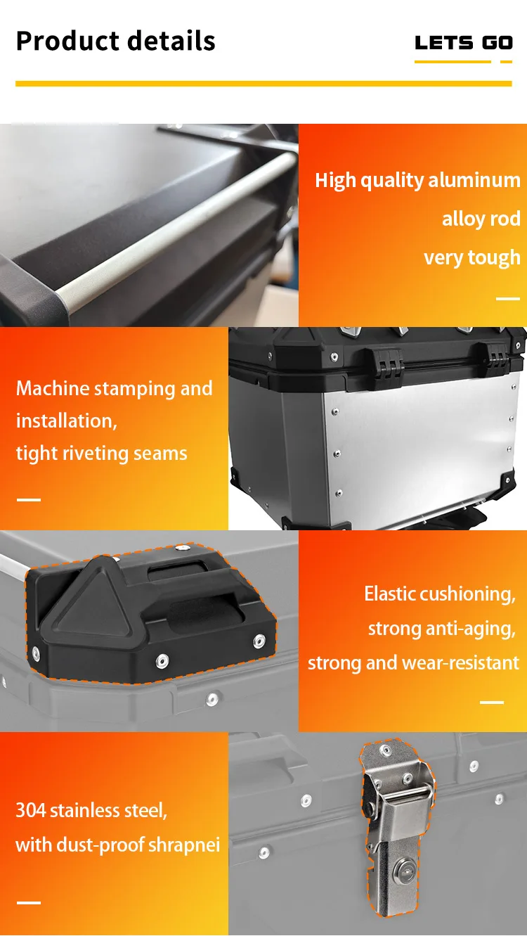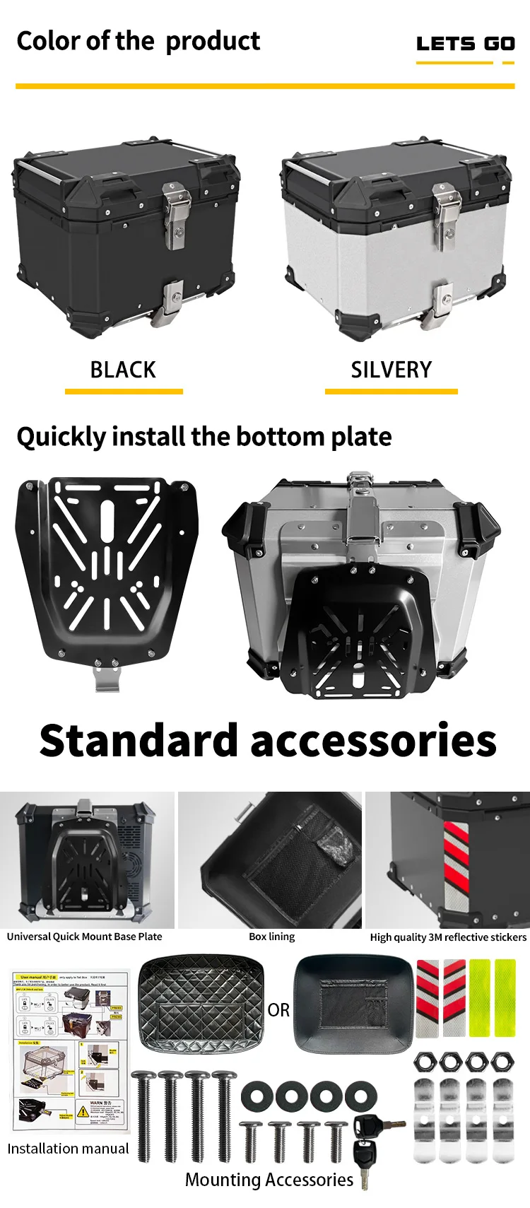 45L Motorcycle aluminum top box Waterproof top box motorcycle tail box