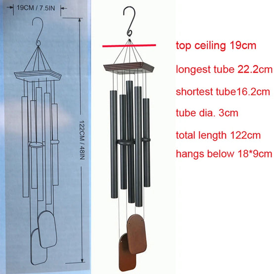 48" 5 Tubes Matt Black Decoration Hanging Metal Craft Outdoor Wind Chime