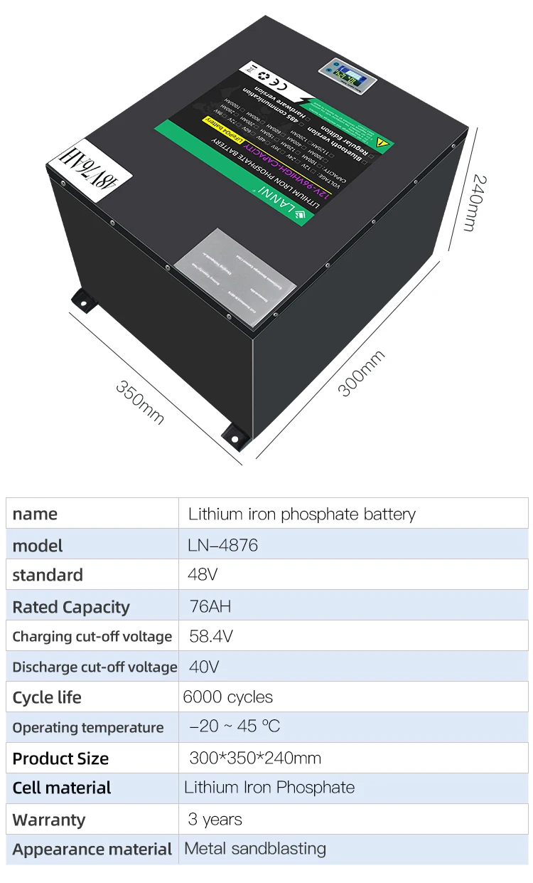 48v76ah lithium iron phosphate solar golf cart lithium ion battery