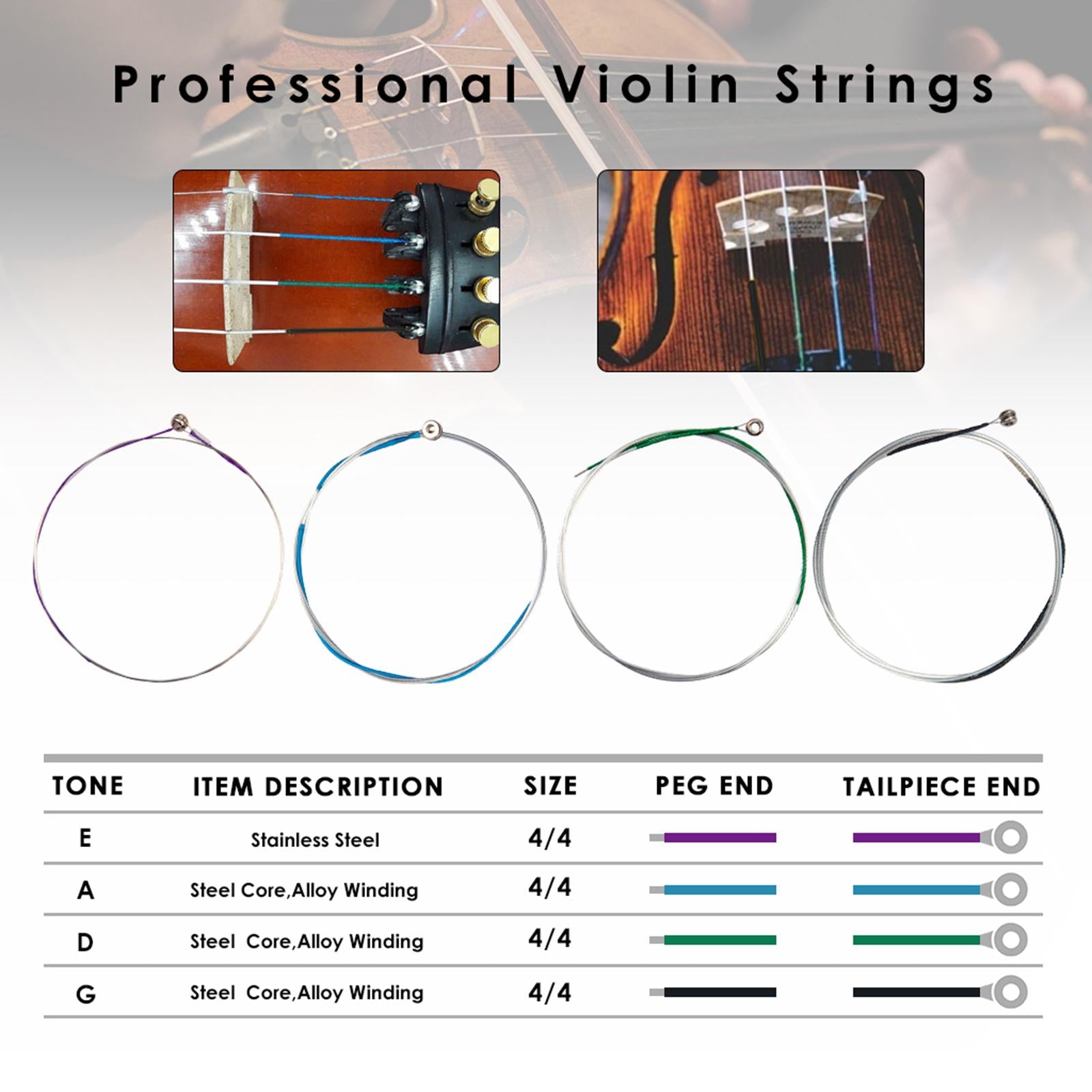 - Replaceable: 3/4,1/2, 4/4,1/4, 1/8 replacement strings for violins