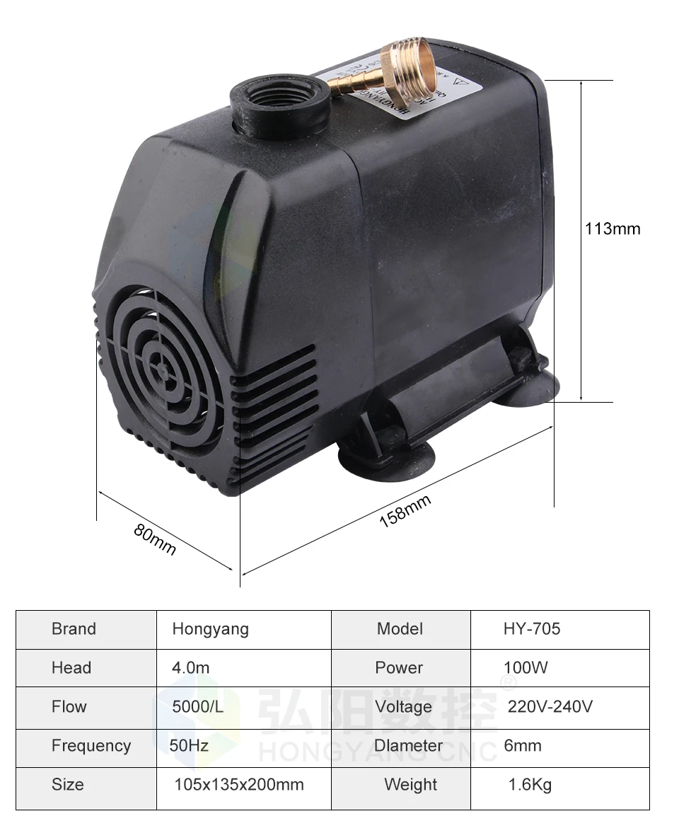 5000L/H 100w engraving machine spindle cooling submersible pump 4m for machine tool cooling aquarium fish farming