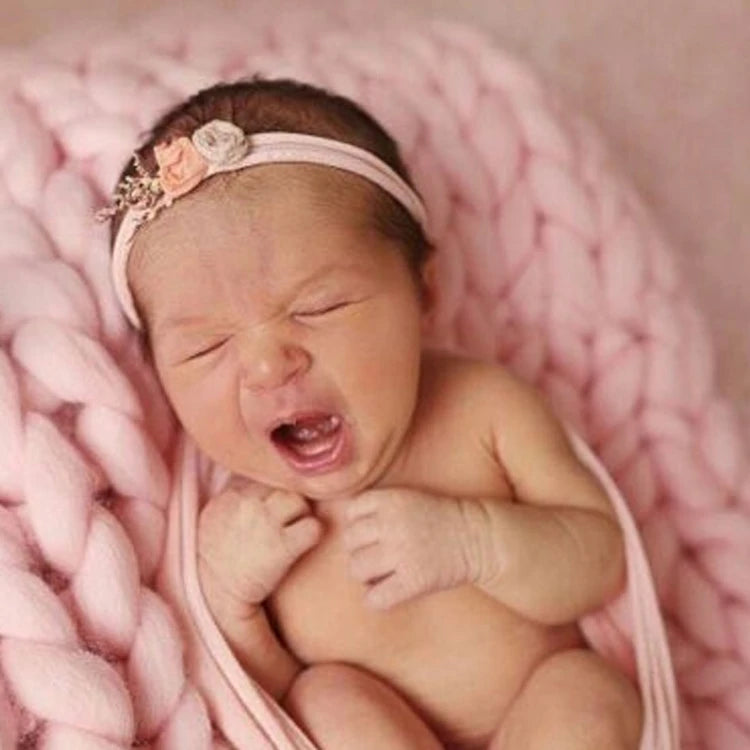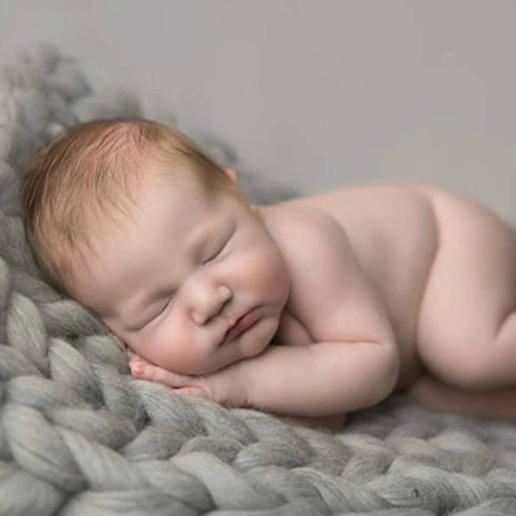 50x50cm New Born Baby Knitted Wool Blanket Chunky Knit Blanket Basket Filler Newborn Photography Props