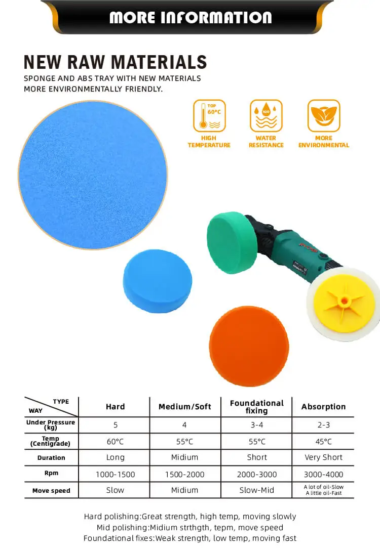 5. Blue color 80 PPI foam is a soft material which is durable and useful for soft paint and hard paint. To work with polish liquid for polishing, or apply with finishing polish for finishing process are greatful.