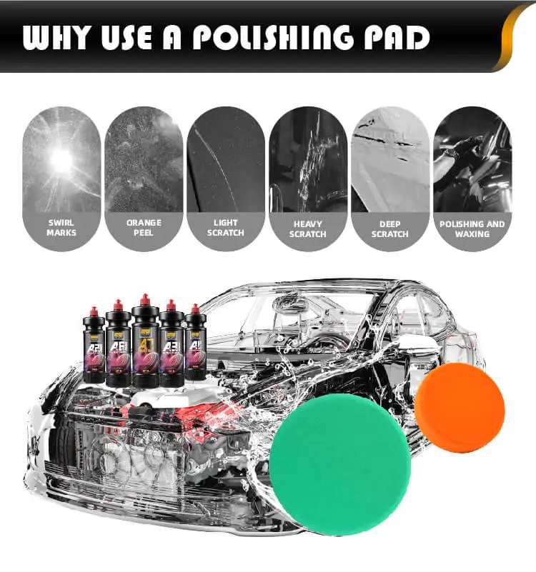 5. The raised top of the foam make it safer to polish and the back plate pad would be not easy to touch the paint surface.