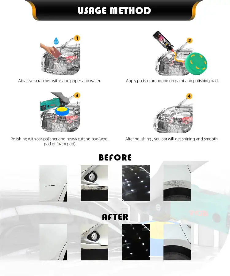 1.The fine and soft sponge tissue can double protect the paint surface. Effective polishing removes the light defects on the paint and recover high gloss.