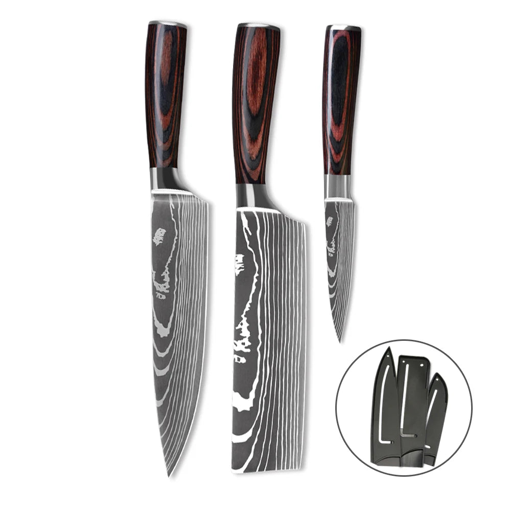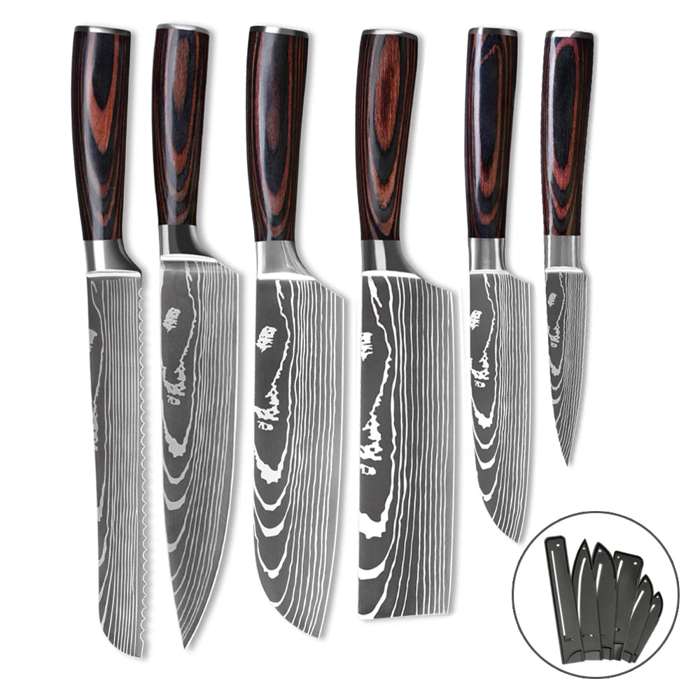 6 pcs Damascus Kitchen Knives 5Cr15MoV stainless steel Kitchen knife set