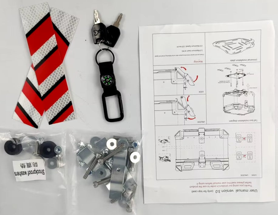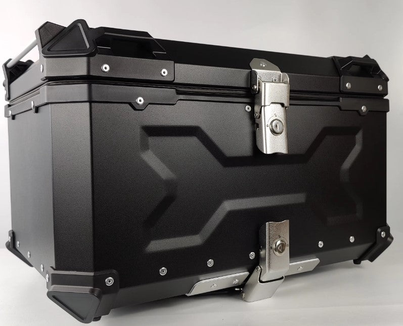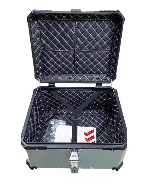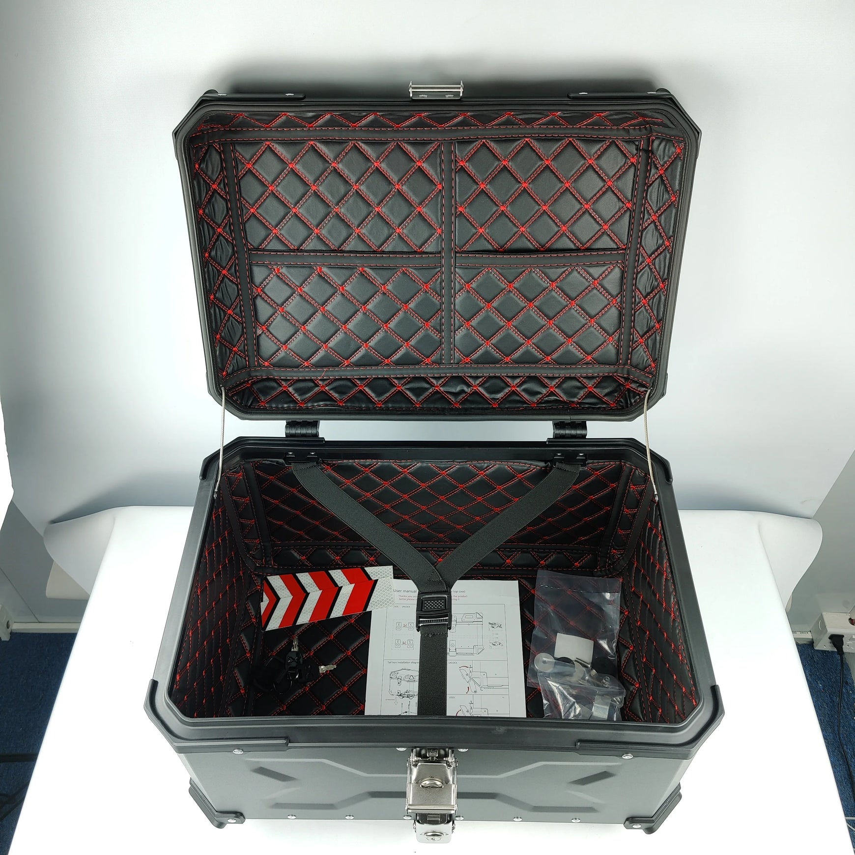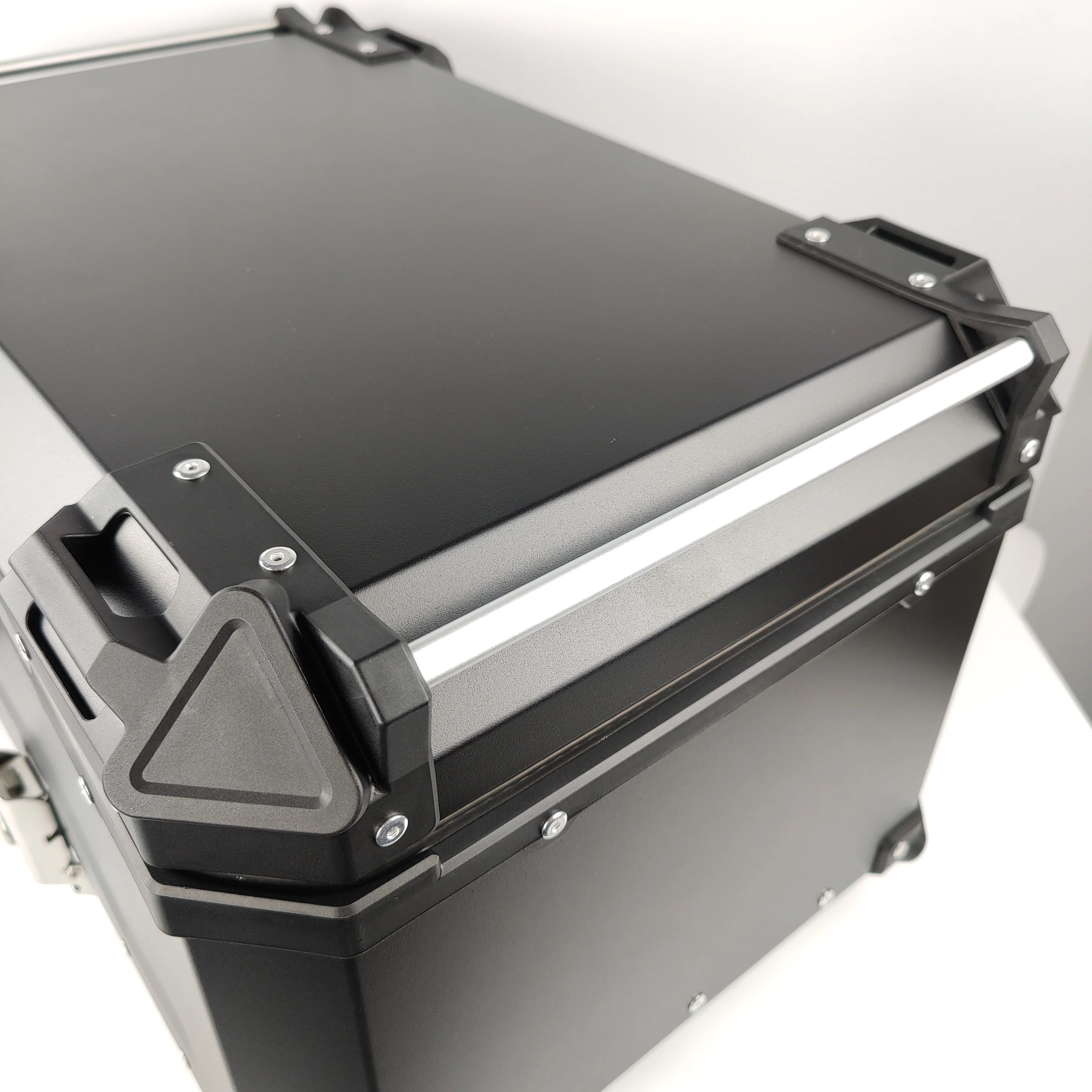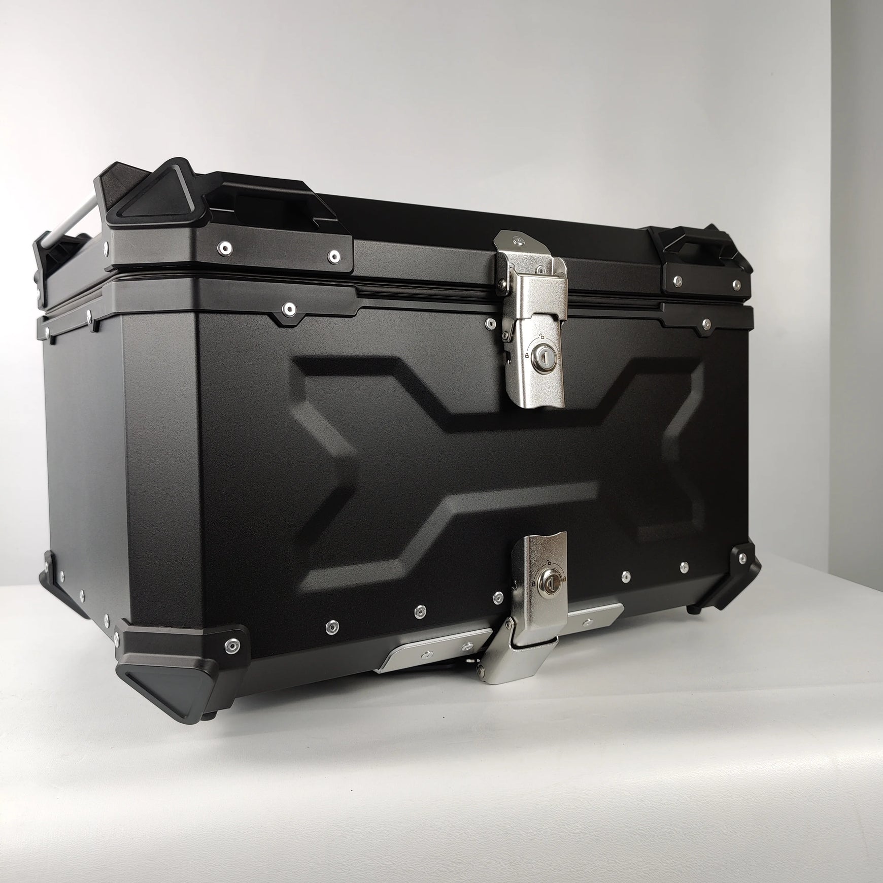 65L With X Aluminium Alloy Motorcycle Tail Box Top Case Scooter Luggage Delivery Box Black/Silver Color