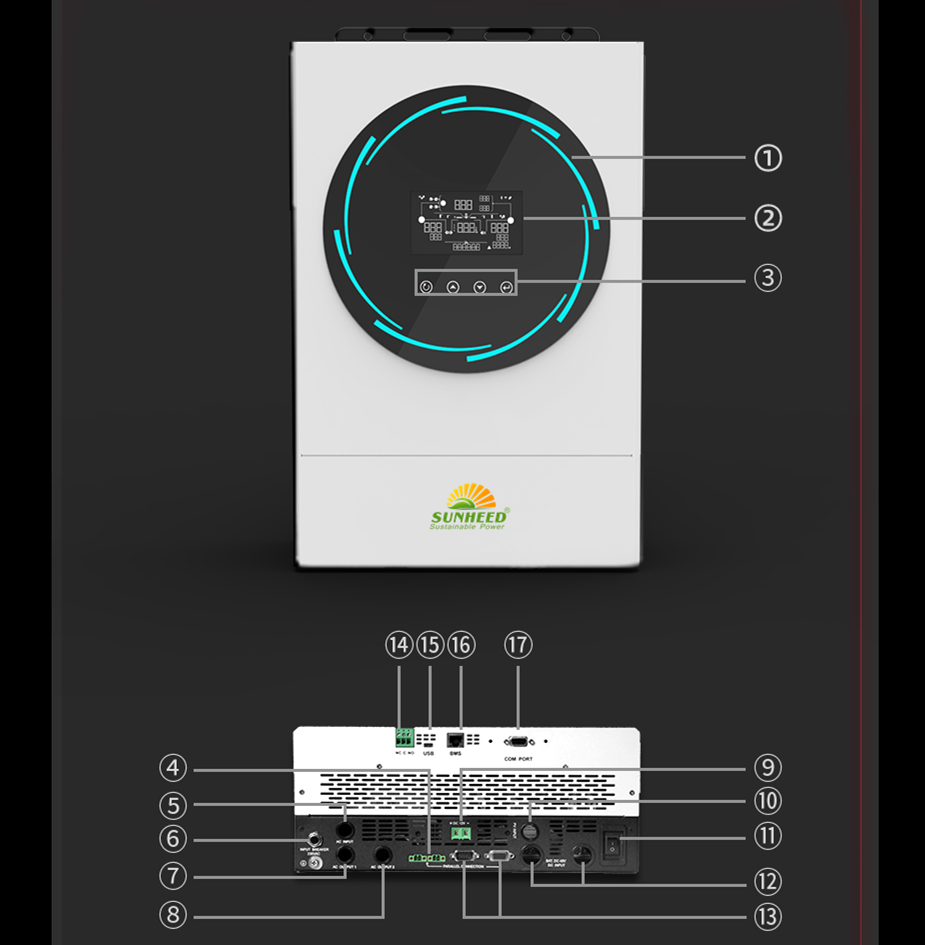 9. Touch buttons on LCD display 10. Wide PV input range (Up to 450Vdc),