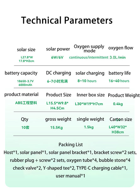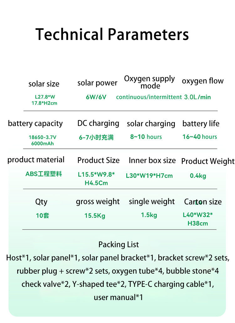 - [With Battery]Built in a 3.7V 6000mAh lithium battery pack for storing energy, thus the oxygen pump working in the night as well.