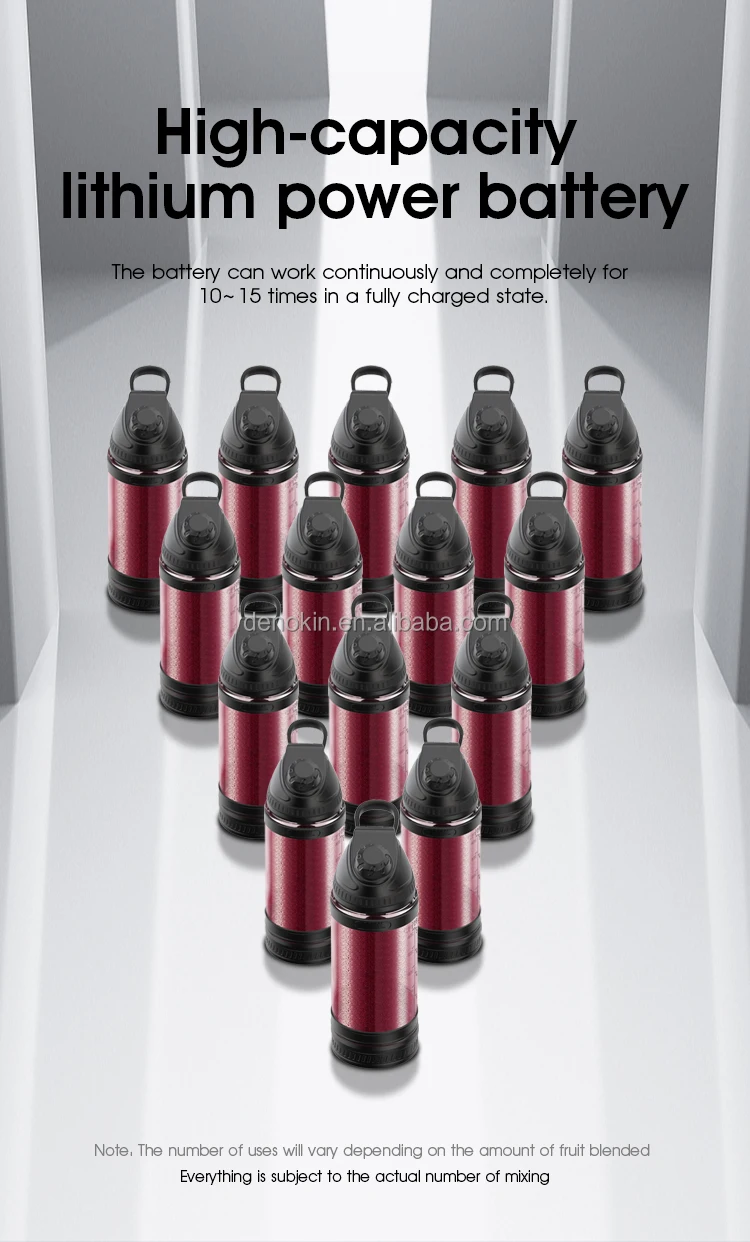 Equipped with 3*2000mAh Battery, the blender can offer up to 15 cups of smoothie on a single charge.