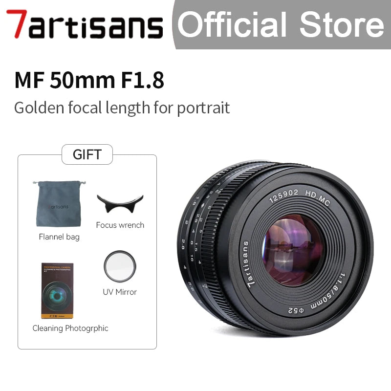 7artisans 7 artisans 50mm f1.8 Large Aperture Portrait MF Prime Lenses Fit For Canon EOS-M M50 M100/Sony E A7/Fuji FX/M4/3 mount