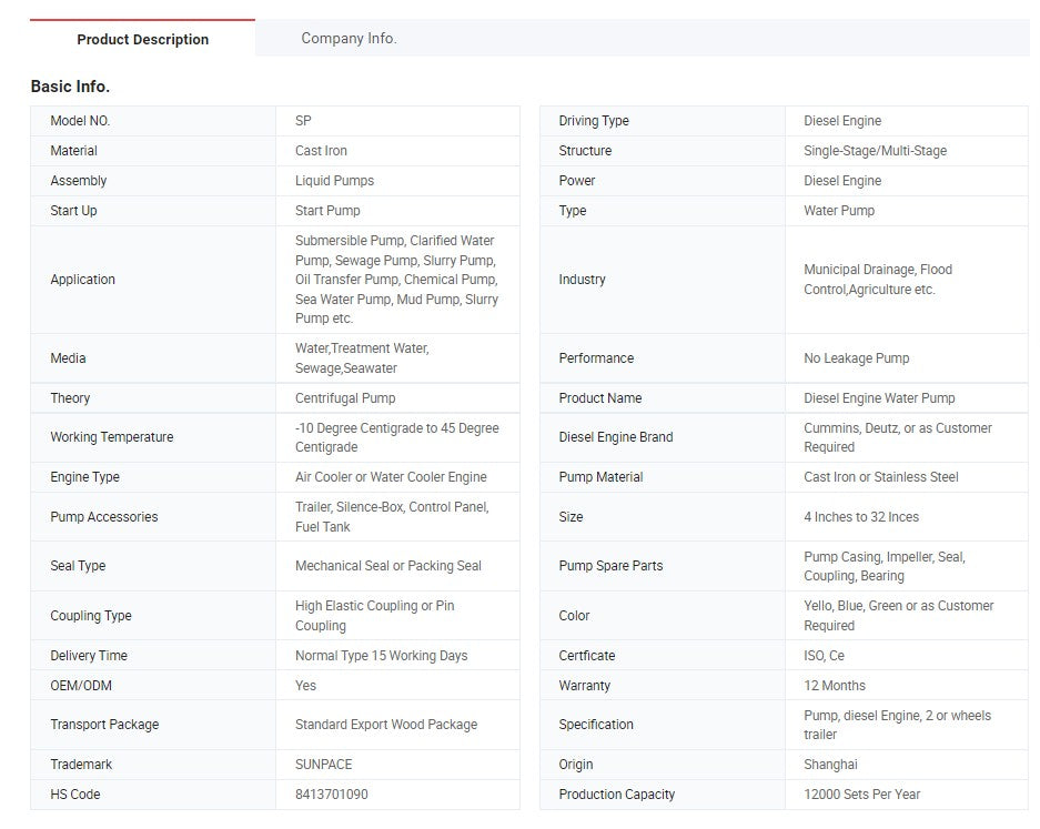 Technical Name : 8 Inch Self-Priming Diesel Engine Centrifugal Pump, Flood Control Pump, Trash Pump, Drainage Pump, Fire-Fighting Pump, Irrigation Pump, Diesel Water Pump.