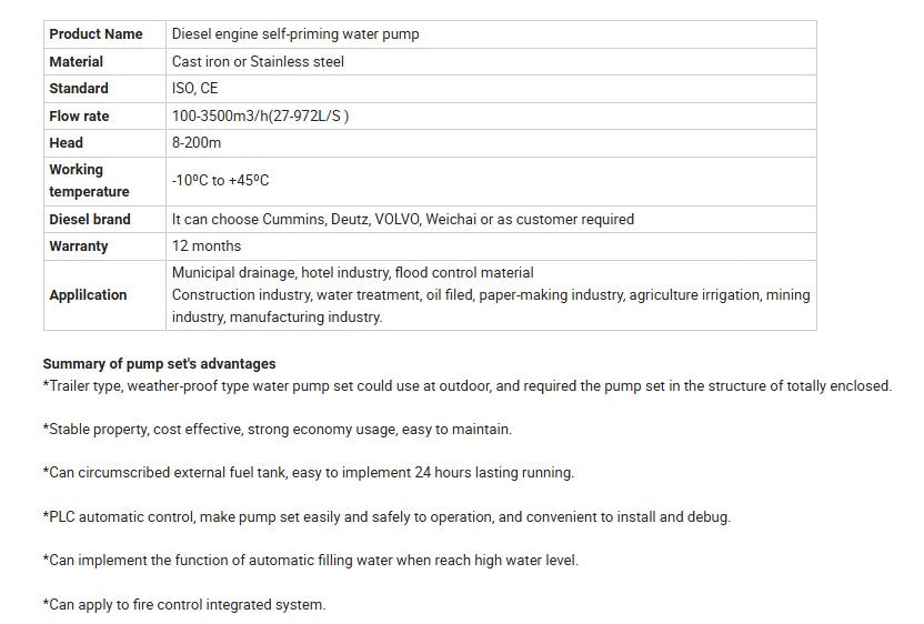 *Trailer type, weather-proof type water pump set could use at outdoor, and required the pump set in the structure of totally enclosed.