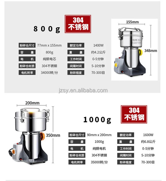 800G Food Mill Powder Crusher Ultrafine Household Small Dry Grain Pepper Grinding Machine Sesame Sorghum Soybean Grinder