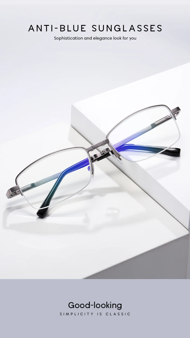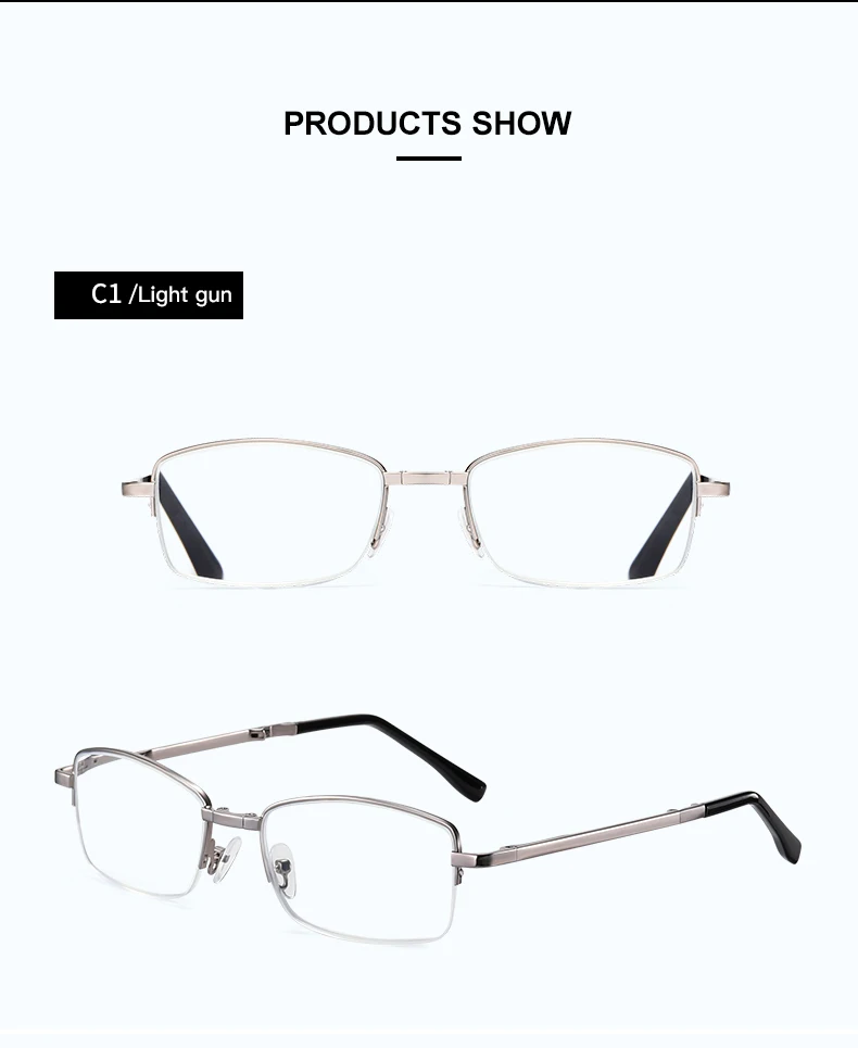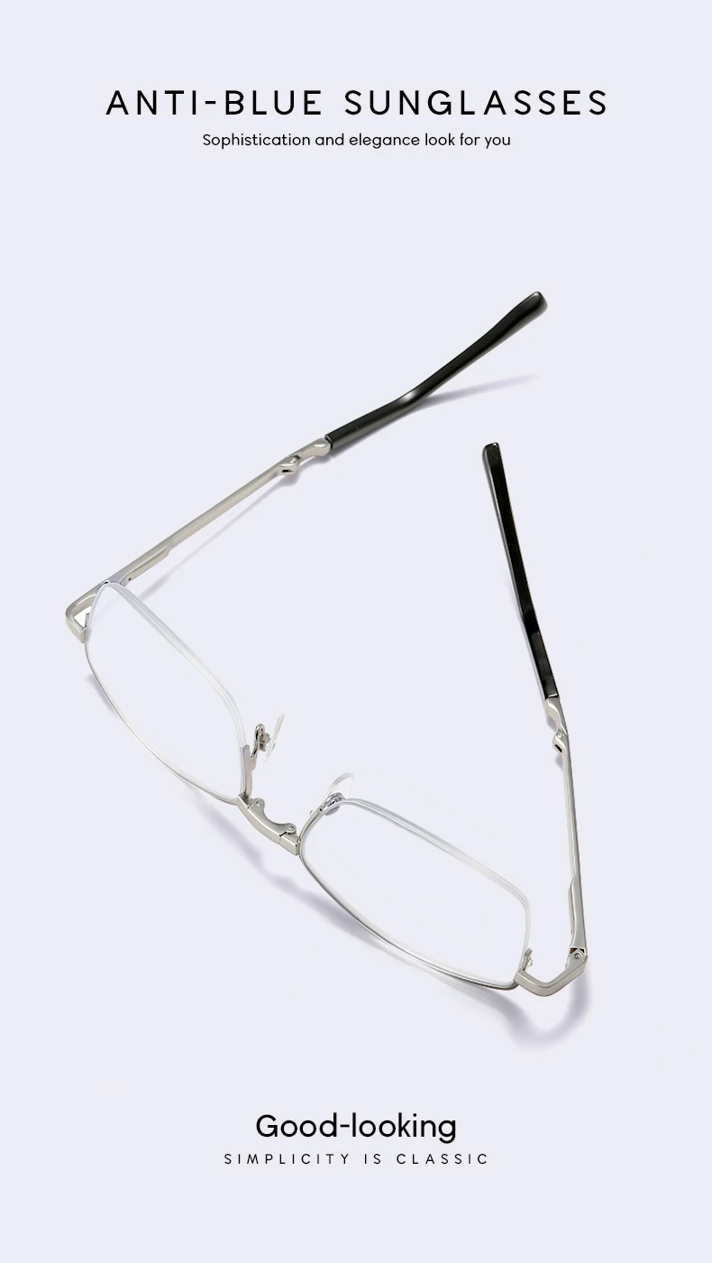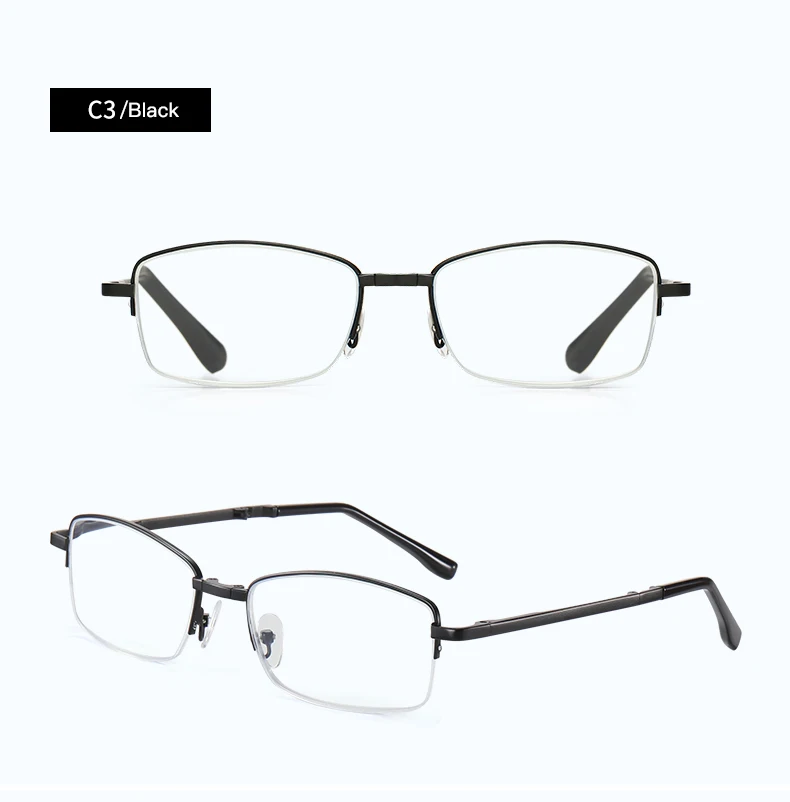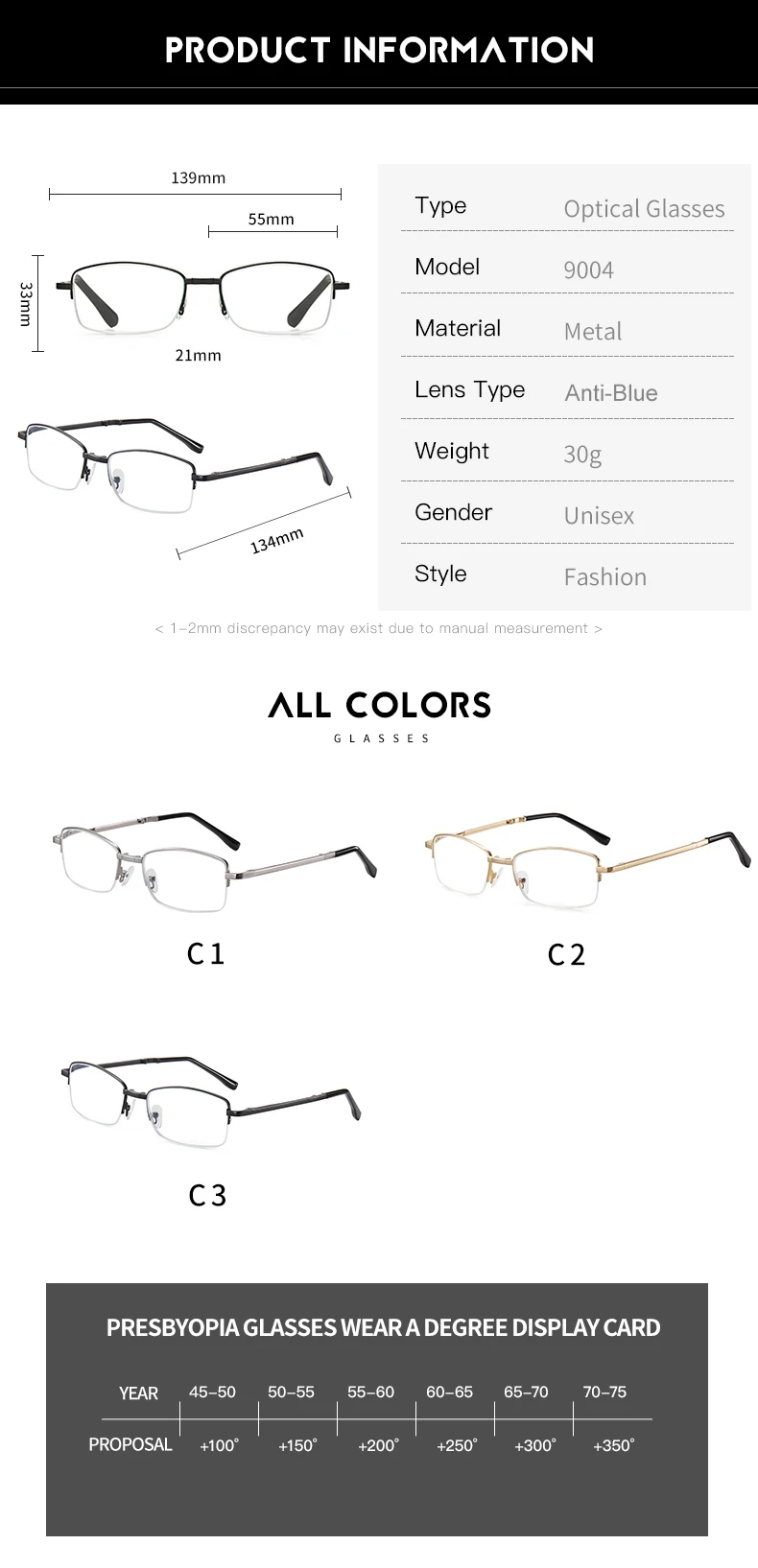 9004 Vintage Rectangle Optical Glasses Light Foldaway Reading Glasses Blue Folding Half Frame Unisex Plastic CE UV400 Sunglasses