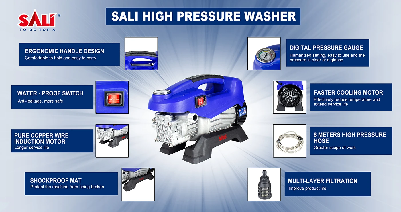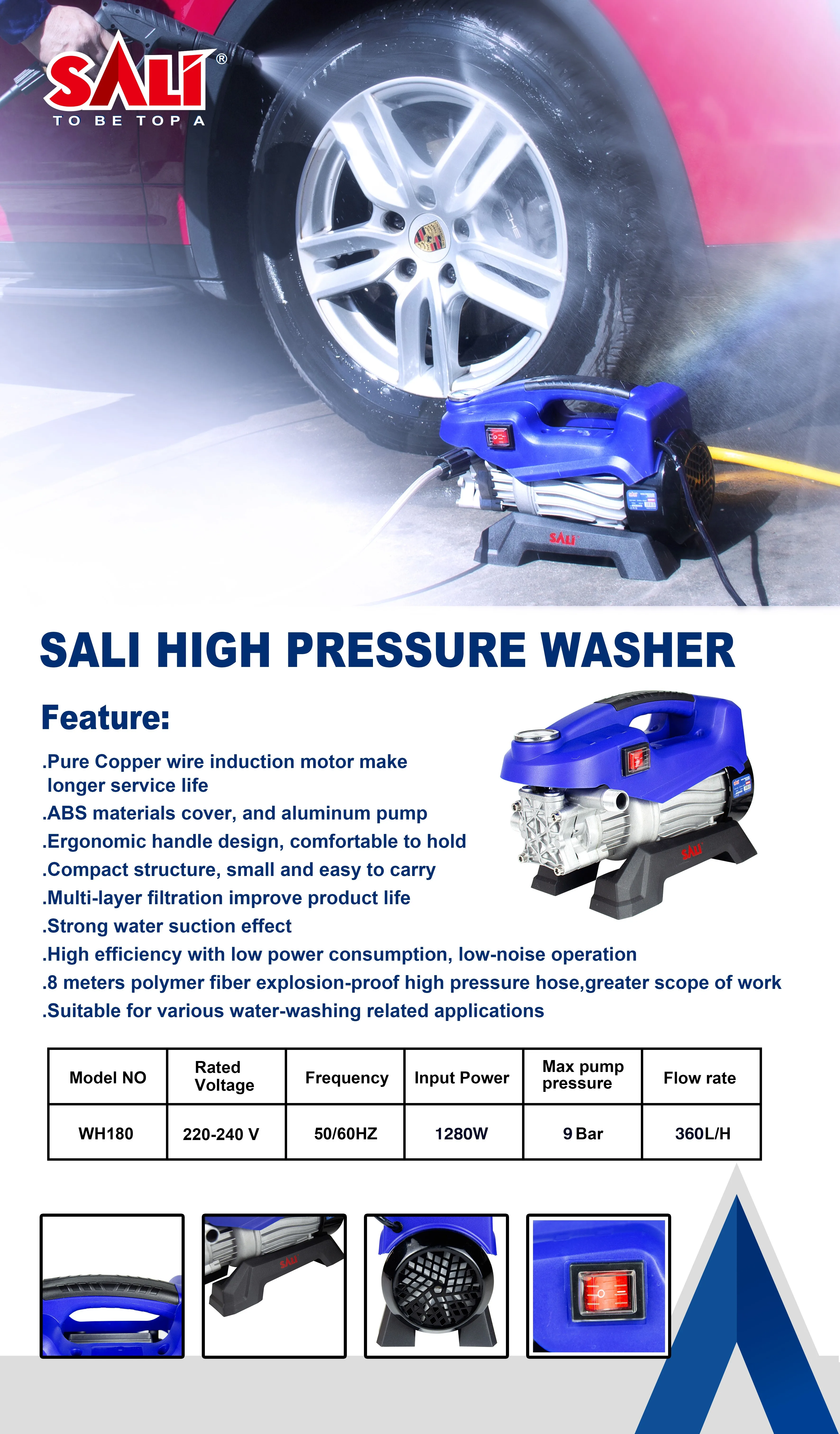ABS Material Cover Pure Copper Wire Induction Motor Multi-layer Filtration 1280W High Pressure Car Washer