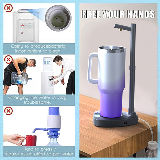 2.【Portable and Detachable】The water dispenser pump is easy to assemble. Anti-slip design with a water cup at the bottom, and the smart pumping design can free your hands when you are busy and working, so you can carry this exquisite water dispenser with you.