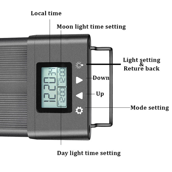 Programmable design with LCD monitor:LCD monitor has 2 channels independently controlling simulated sunrise and sunset