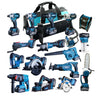 | CK2114 | Cordless brushless impact drill + Cordless brushless impact screwdriver +Cordless brushless impact wrecnch+Cordless brushless angle grinder+Cordless circular saw +Cordless reciprocating saw+Cordless blower+Cordless brushless rotary hammer +Cordless jig saw+Cordless planer+Cordless blueteeth speaker++Cordless LED light+Cordless trimmer+Cordless chain saw+ 5*4.0 Abattery + 4*2.0A Fast charger +2*18 inch bag |