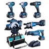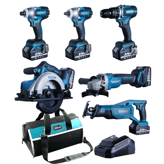| CK2106 | Cordless brushless impact drill + Cordless brushless impact screwdriver +Cordless brushless impact wrecnch+Cordless brushless angle grinder+Cordless circular saw +Cordless reciprocating saw + 3*4.0 Abattery + 2*2.0A Fast charger +1*18 inch bag |