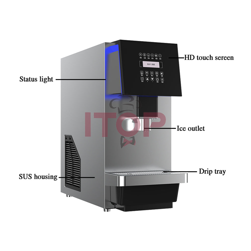 ●Continuous ice making function ●With the function of taking ice, taking ice water and taking water ●With the function of cleaning and emptying the water tank ●Pre-book ice making function ●Can set ice, ice water, water time ●There is a function to cancel the set time ●Waste water tank full alarm function ●With water shortage abnormal alarm function