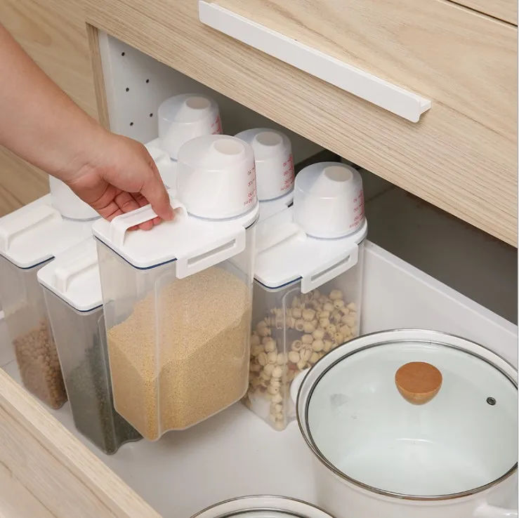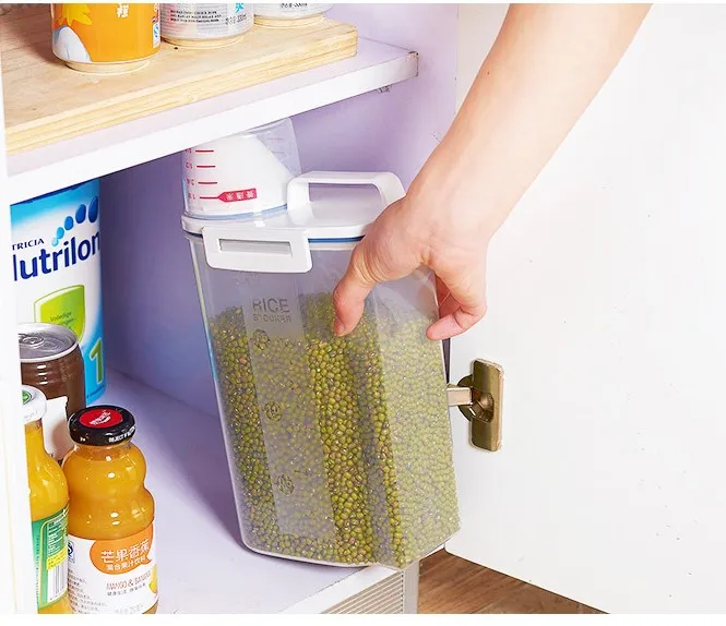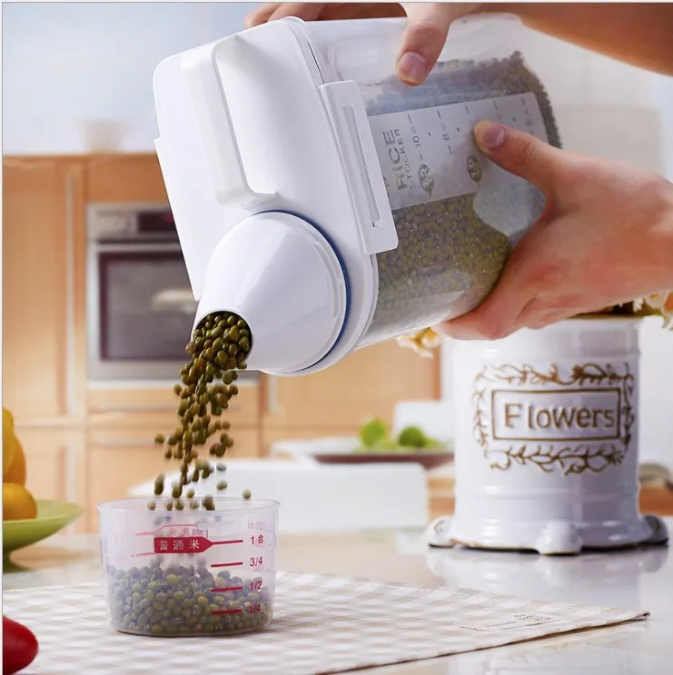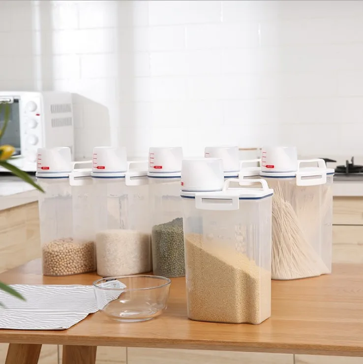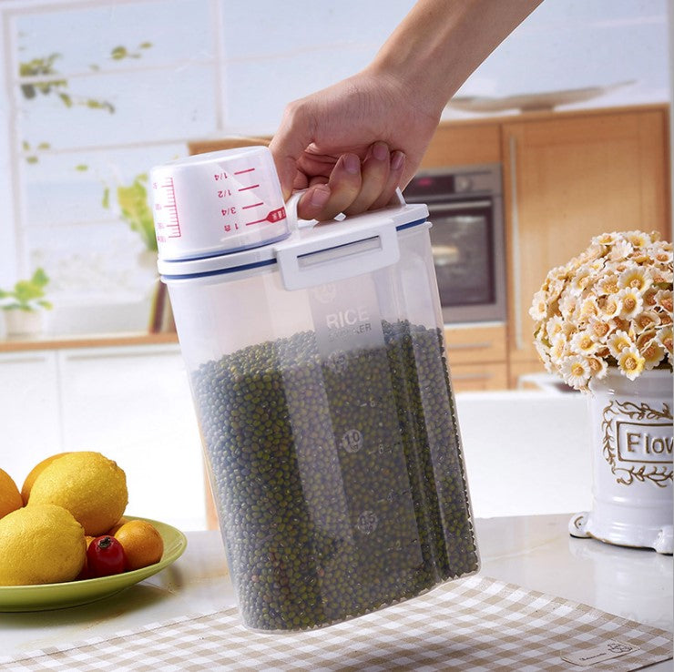 Airtight Moisture-proof Insect-proof Sealed Kitchen Cereal Food Grain Storage Containers Rice Dispenser Jar With Measuring Cup