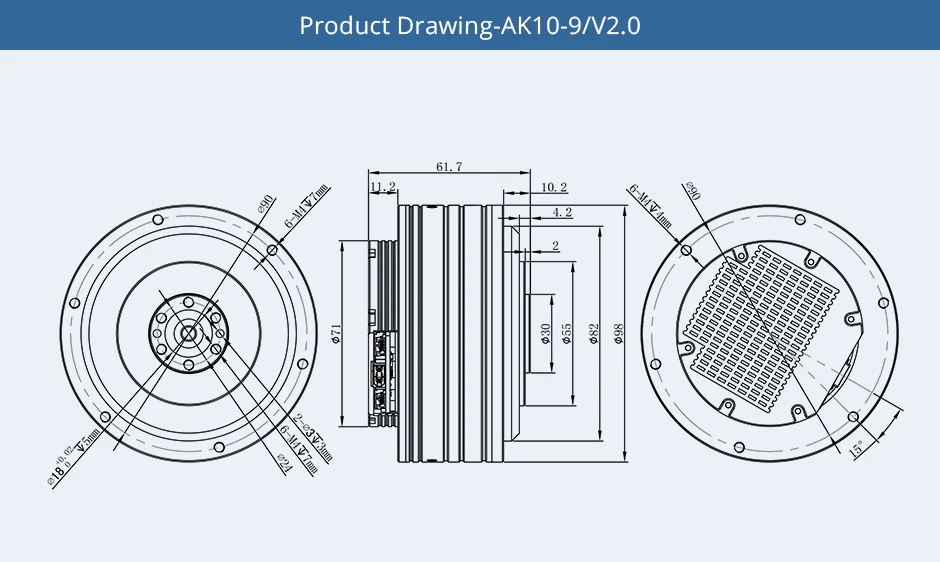 AK10-9 V2.0 Factory Supply slow speed 10nm torque dc direct drive bldc hub motor for robot 20nm