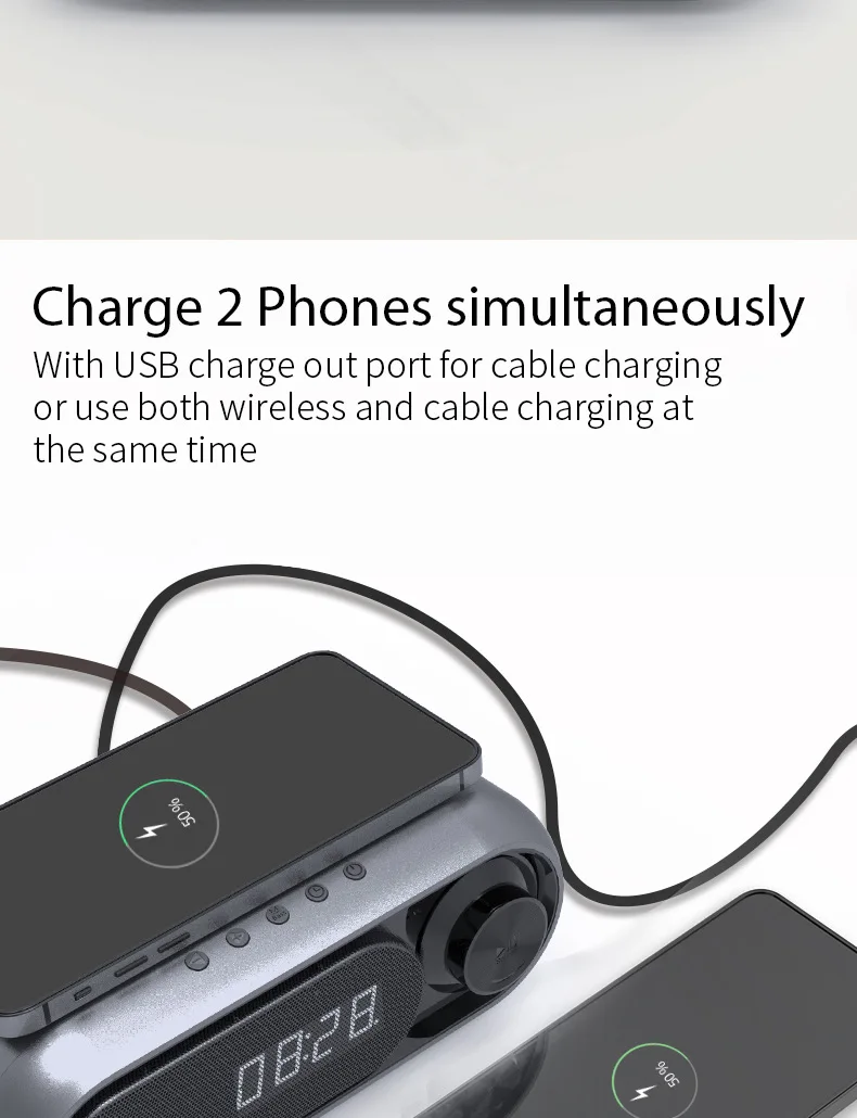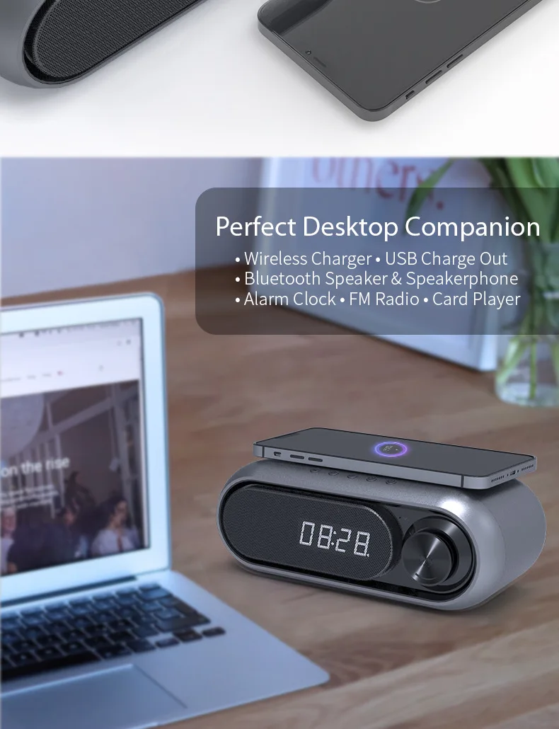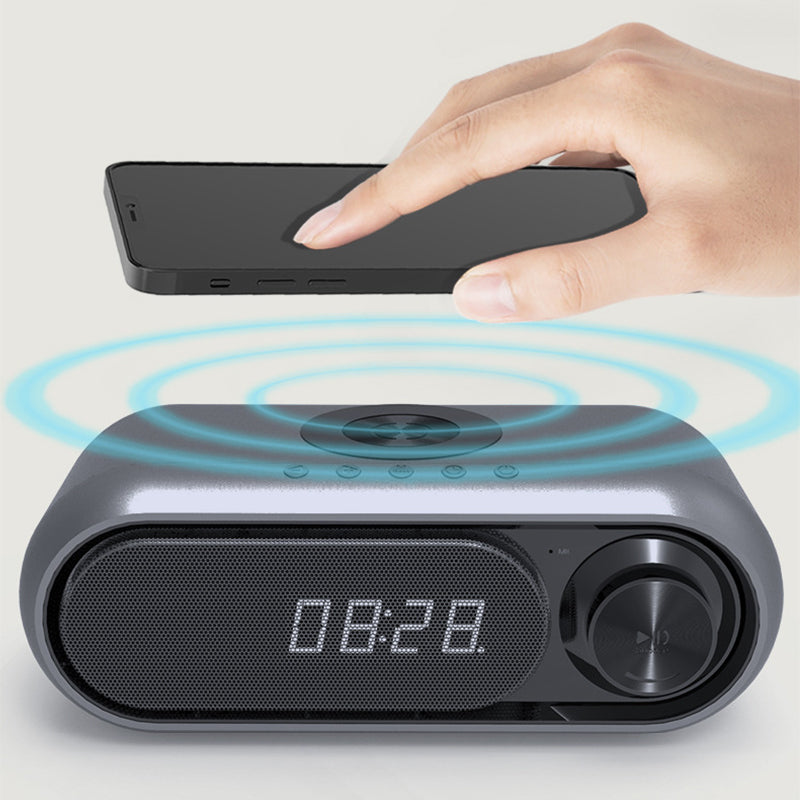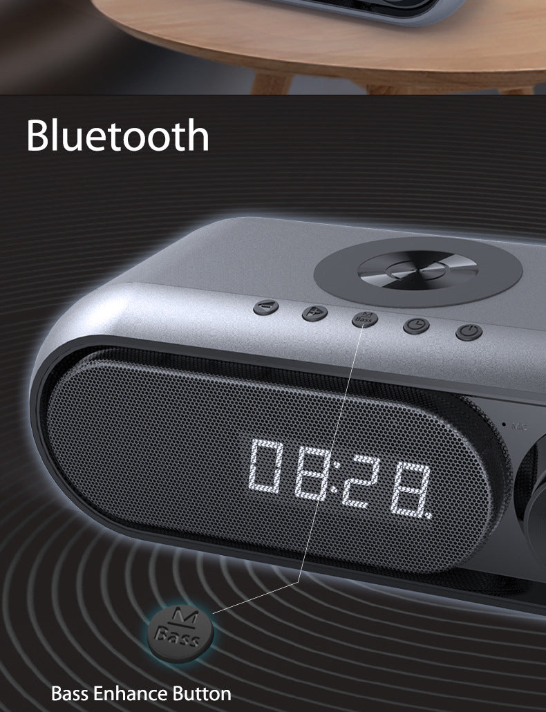 ALL-IN-ONE Bluetooth Speaker With Alarm / Digital Clock / Wireless Charging / AUX / TF / FM
