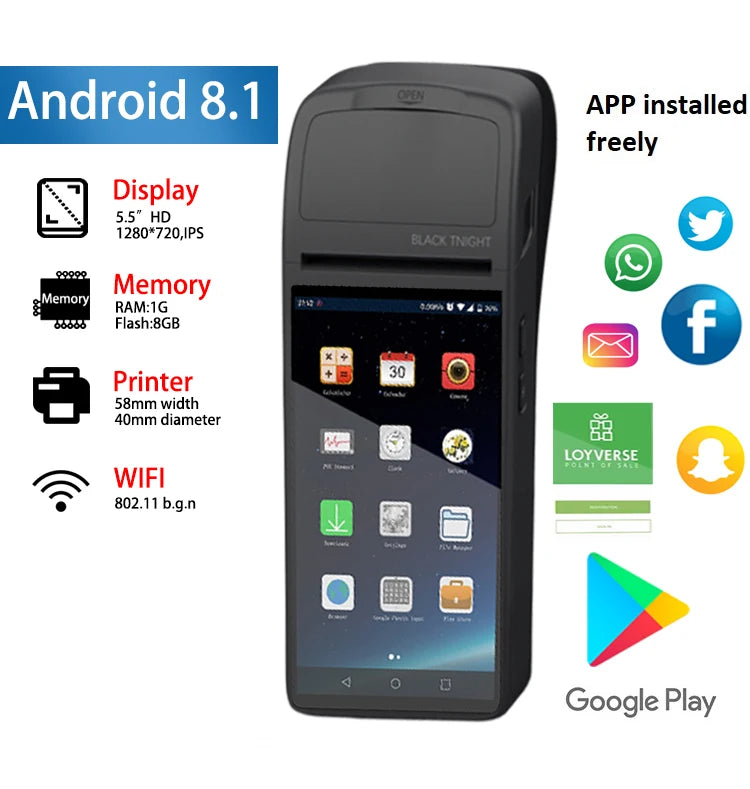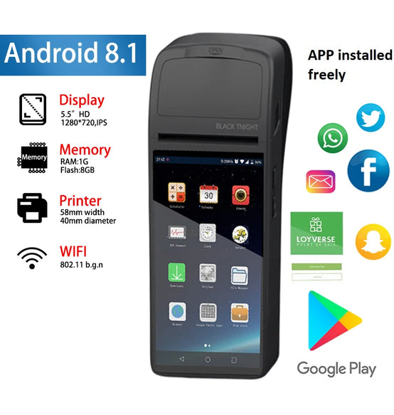 All in one electronic POS terminal point of sale software Android system machine, touch screen monitors handheld printer