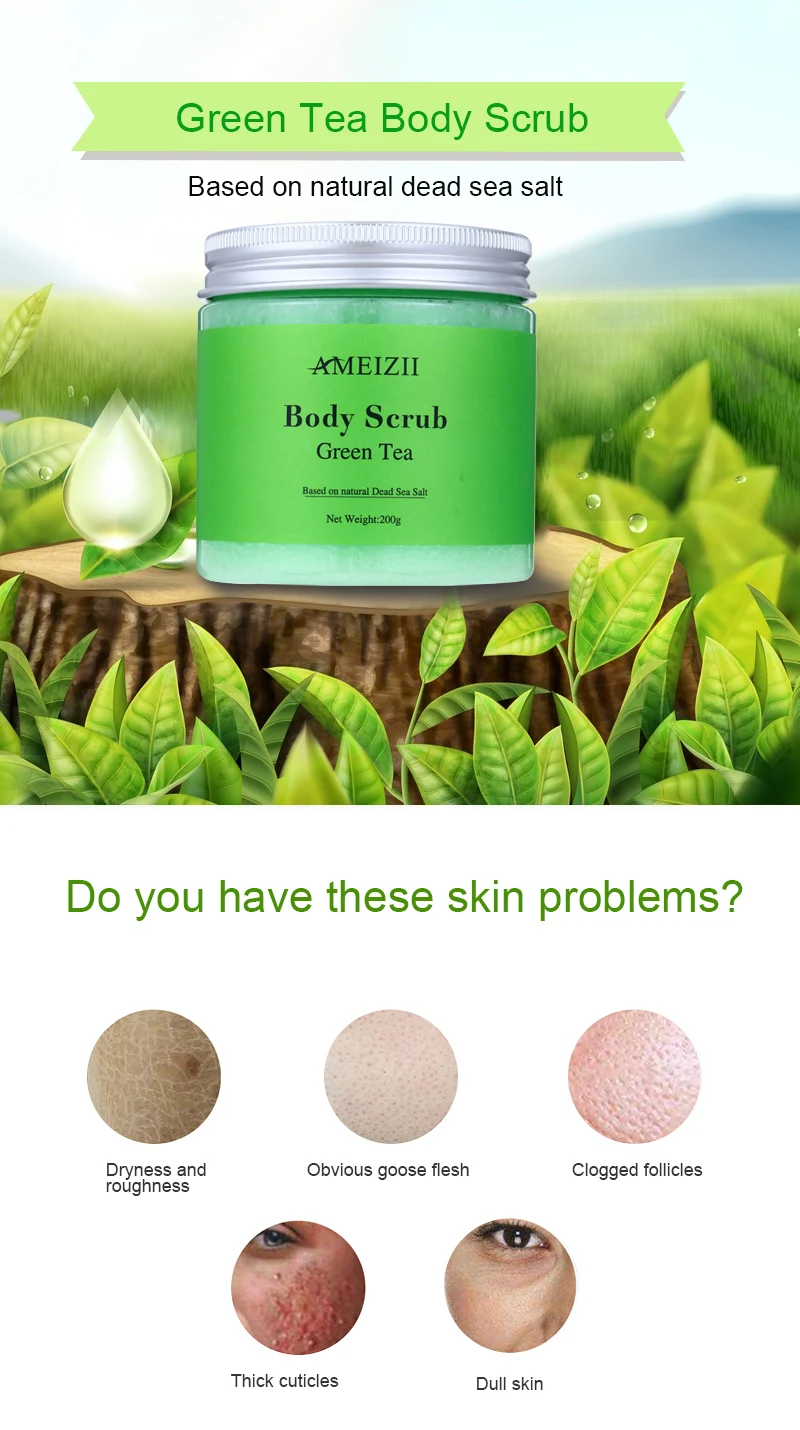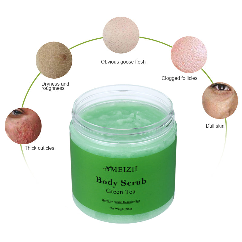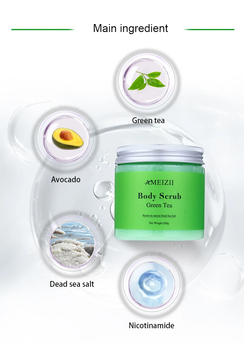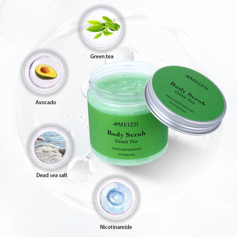 Amazon Top Seller Green Tea Body Scrub Whitening Nourishing Exfoliating Gommage Corps Exfoliante Skin Care Clean Bodyscrub
