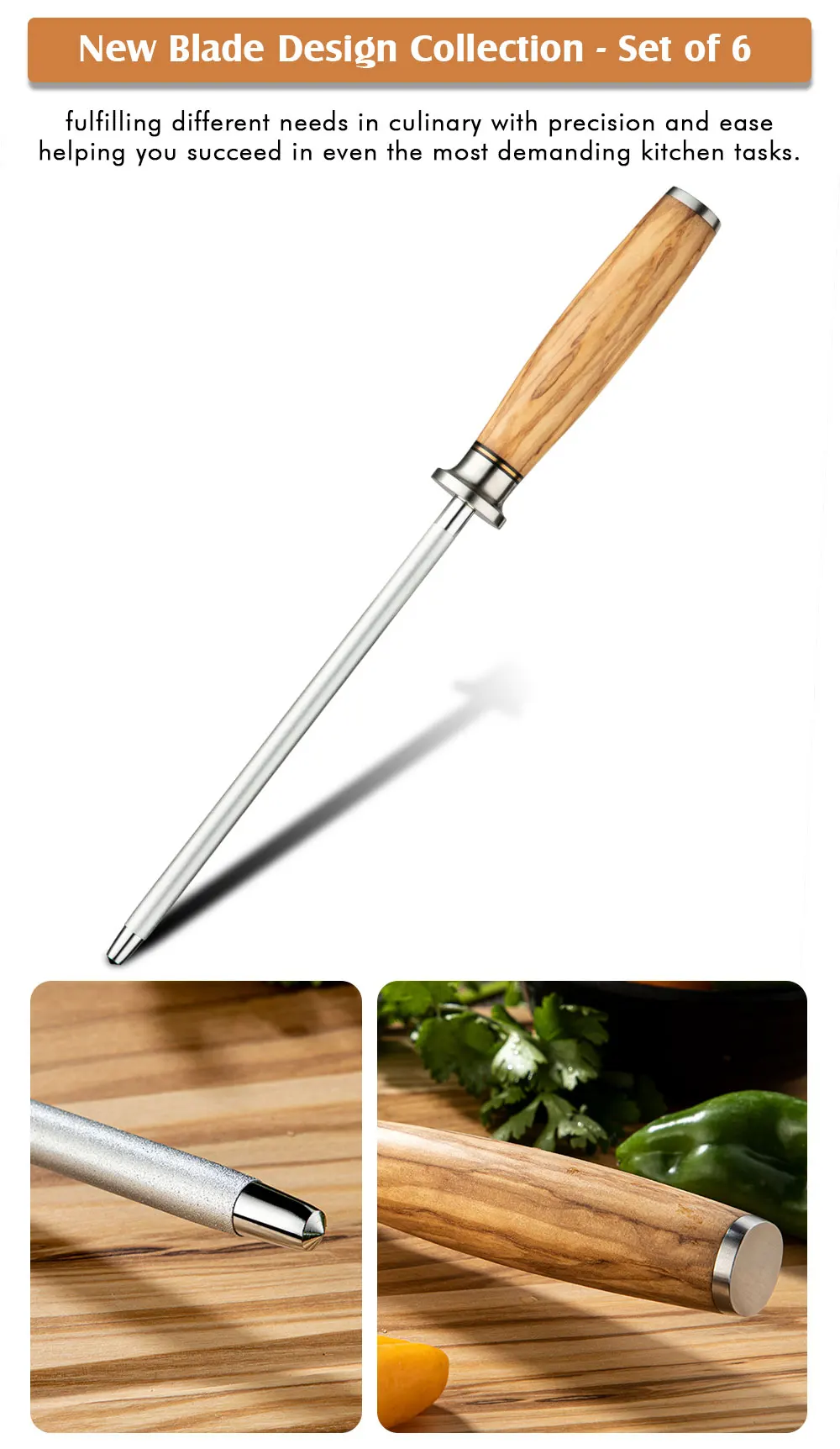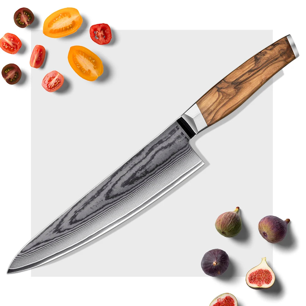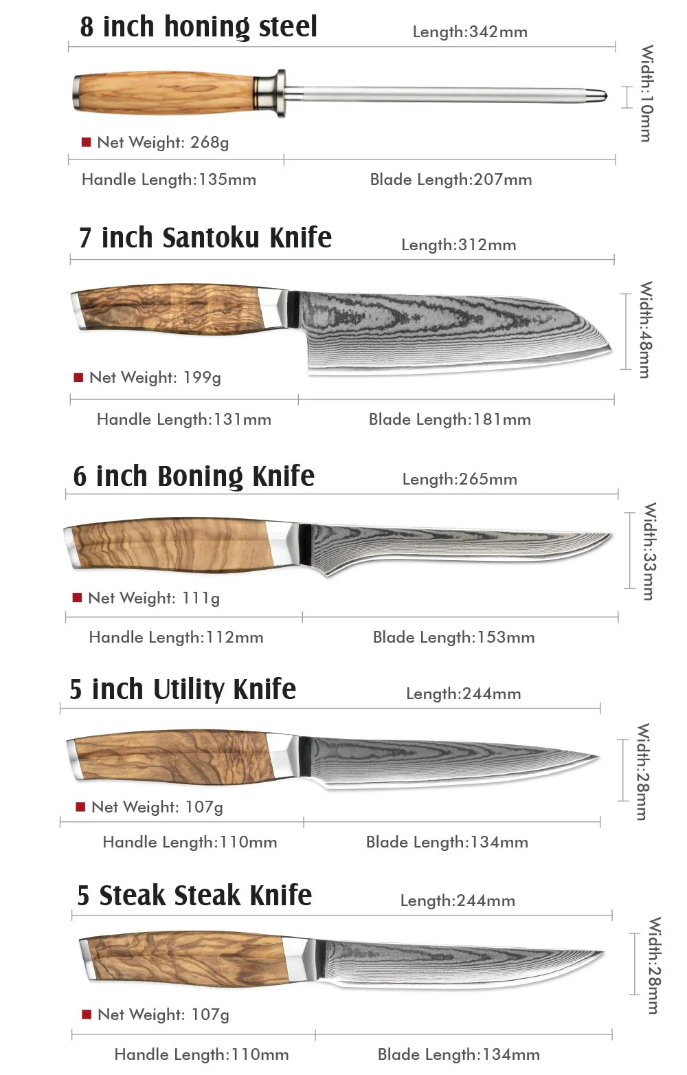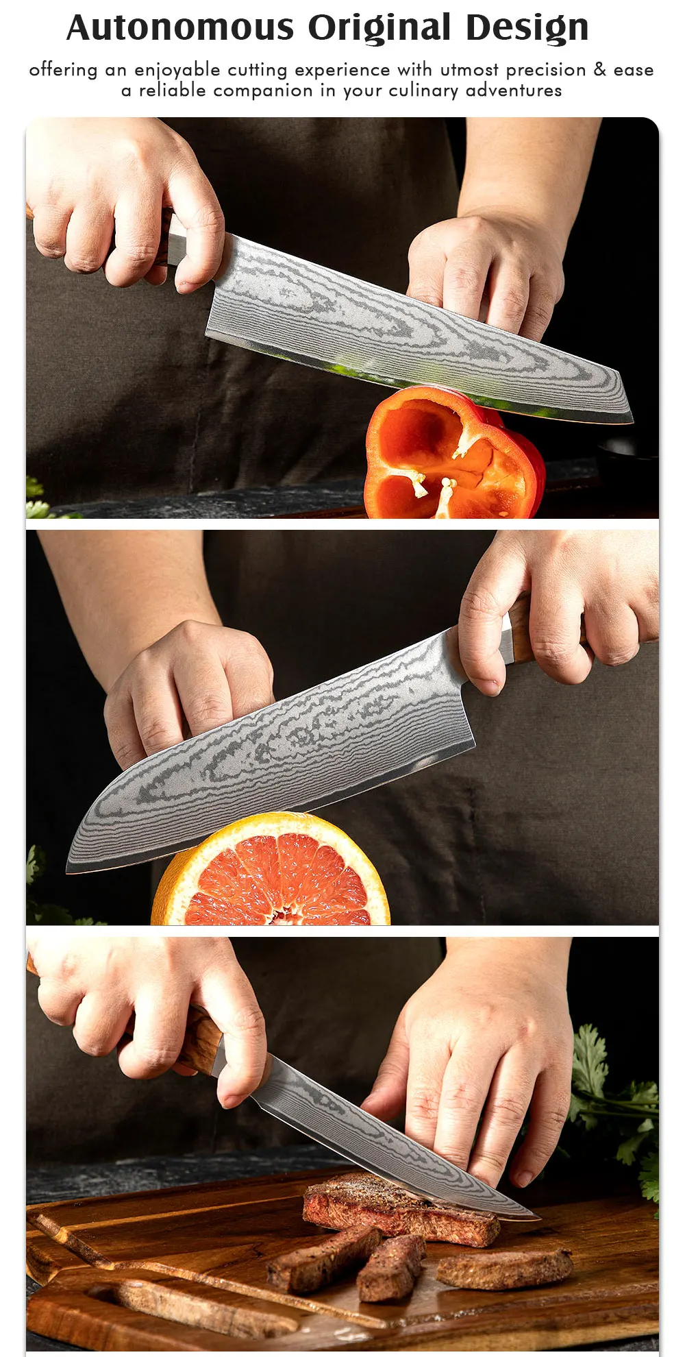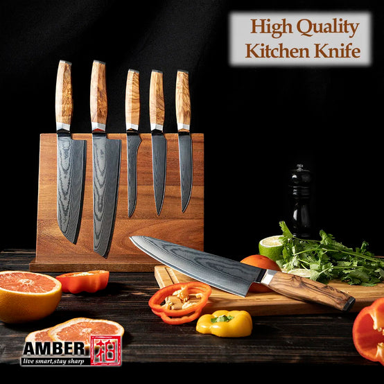Amber Professional Olive Wood Handle japanese damascus 6pcs knives set kitchen chef utility fruit paring knife chef knife set