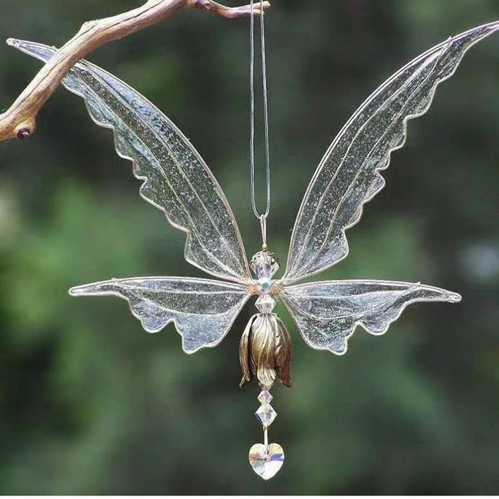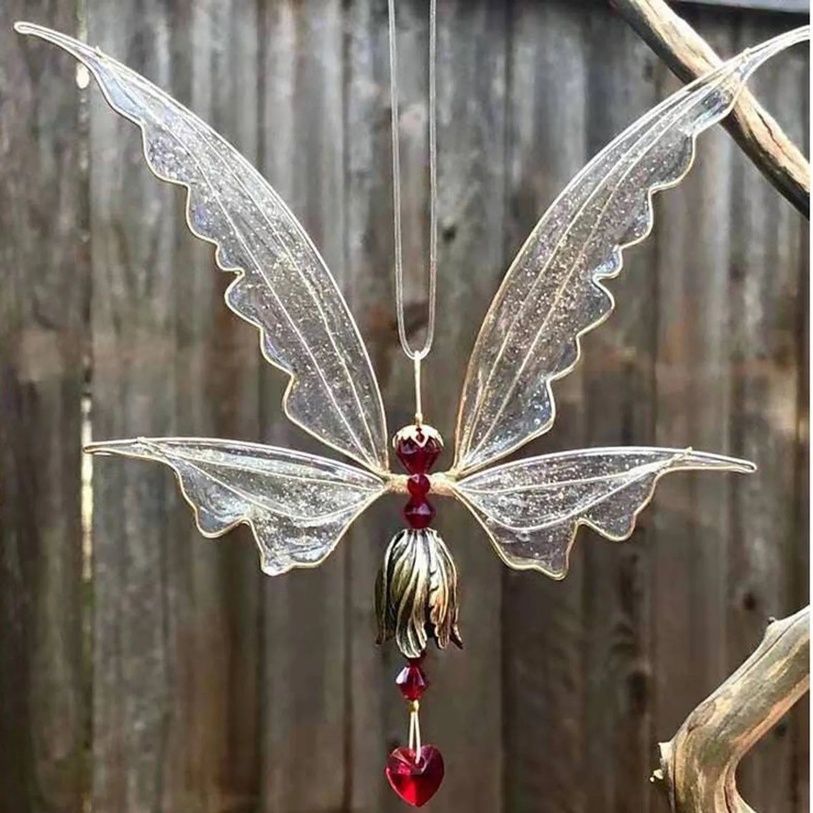 Angel Butterfly Wings Wind Chimes for Outside Hanging Crystal Wind Chime Pendant Memorial Wind Chimes Decor for Patio Garden