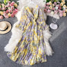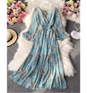 New Korean style floral print long sleeve casual A Line v neck dresses women lady elegant